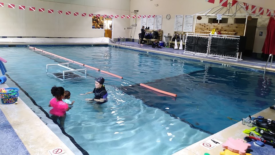 The facility features an indoor heated pool specifically designed for confined water training. While a precise temperature is not publicly specified, dive training pools are generally maintained at a comfortable range, typically between 80-86°F (27-30°C), to ensure a pleasant learning environment for students.