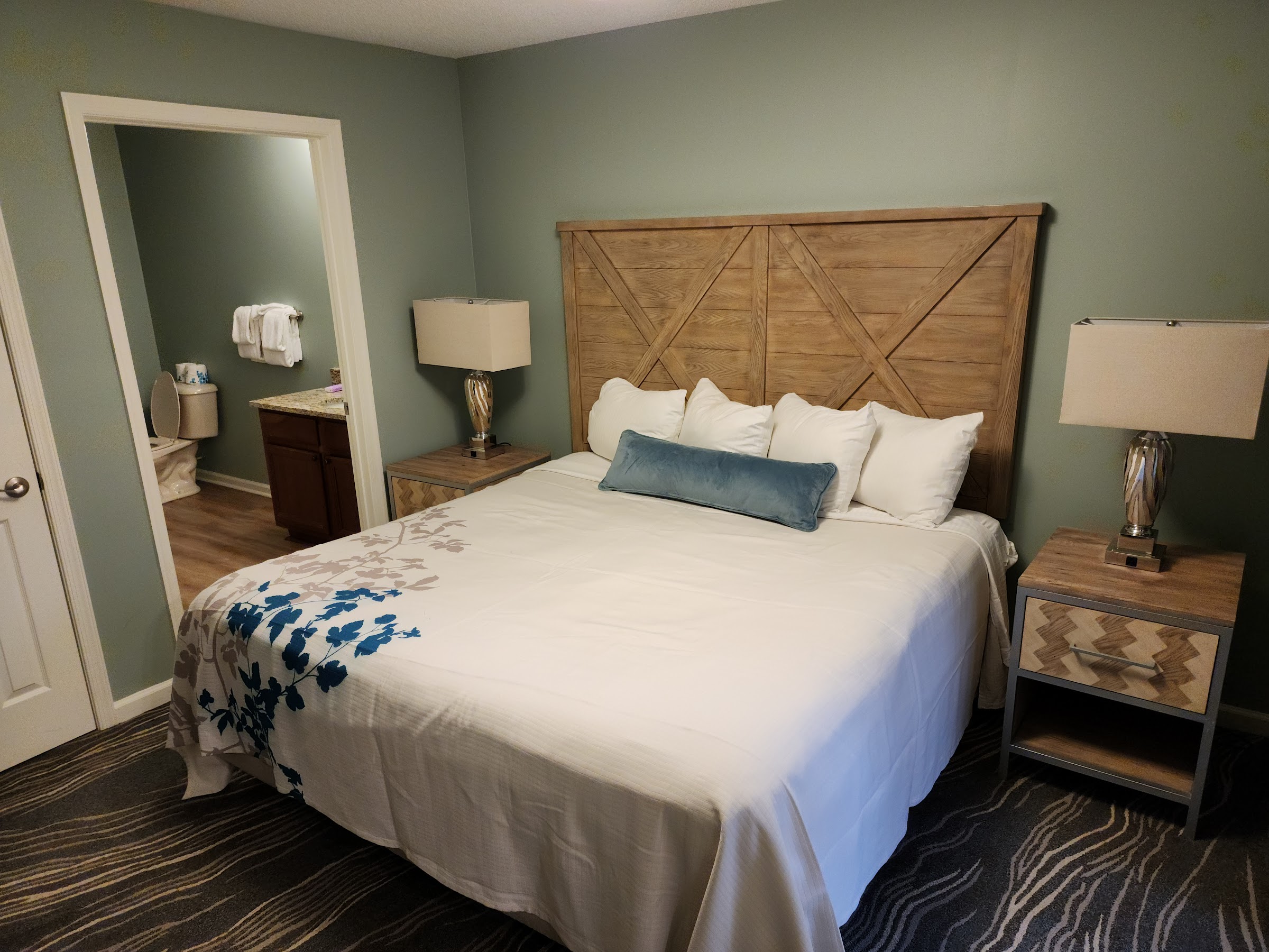 Checked in with my family of 4. Guess services very kind. The room was absolutely horrible. Clean sheets. Dated scratched furniture, 19 inch TV. Dirty carpet in the hallway leading to the room. Dirty carpet inside of the room. Rust around the faucets, dirty old knobs on the faucets. Stains on the chairs. We checked in and checked out. Horrible.