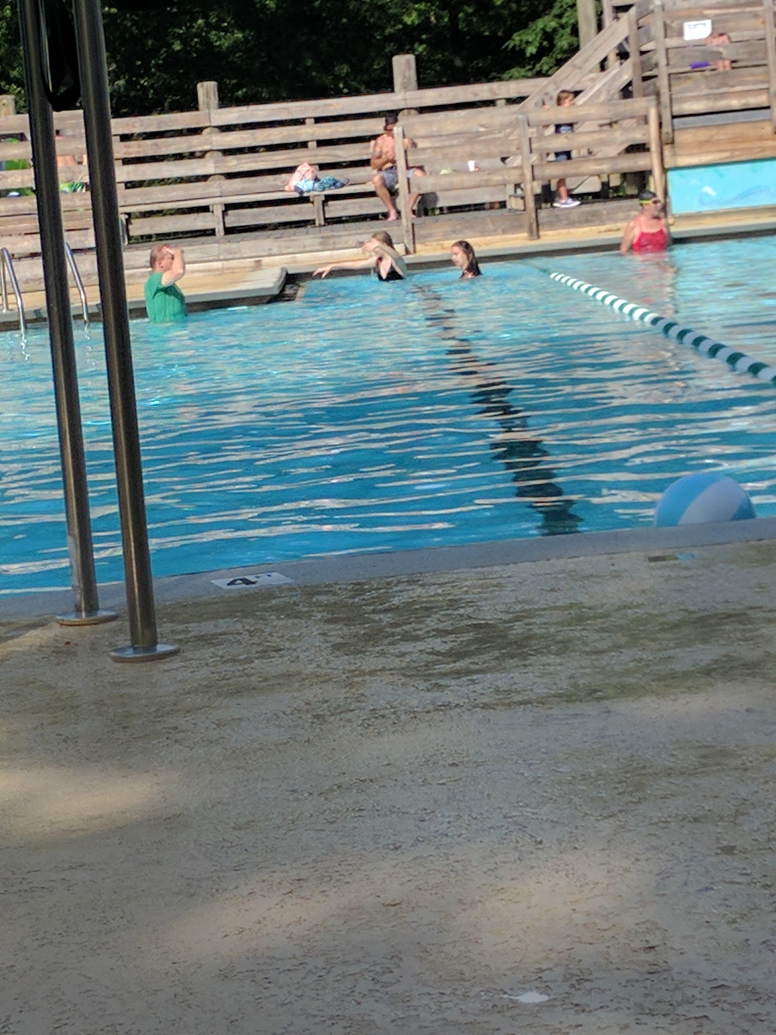 Plenty of space to stretch out/swim, but get there early if you want a chair. The kiddie pool needed to be cleaned out when we went and had lots of leaves. There are not steps into the pool, only ladders or seat lifts for those that need some assistance which keeps the pool accessible but not the easiest to get in and out of.
