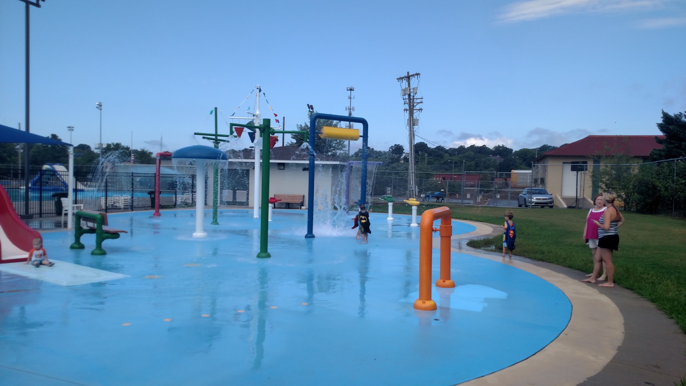 Visiting family for the summer and this was the perfect place to take our 14 month old daughter. She loved the splash pad and shallow pools. I appreciated that they had life vests available. The lifeguards were great and extremely attentive to what was going on in the pool and on the deck. Great way to beat the heat with kids!