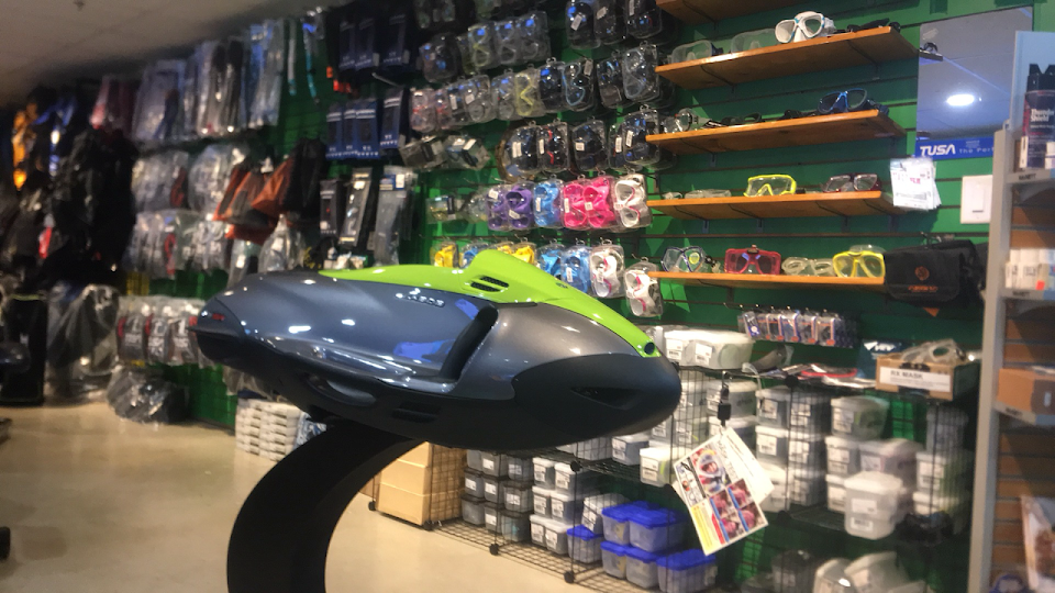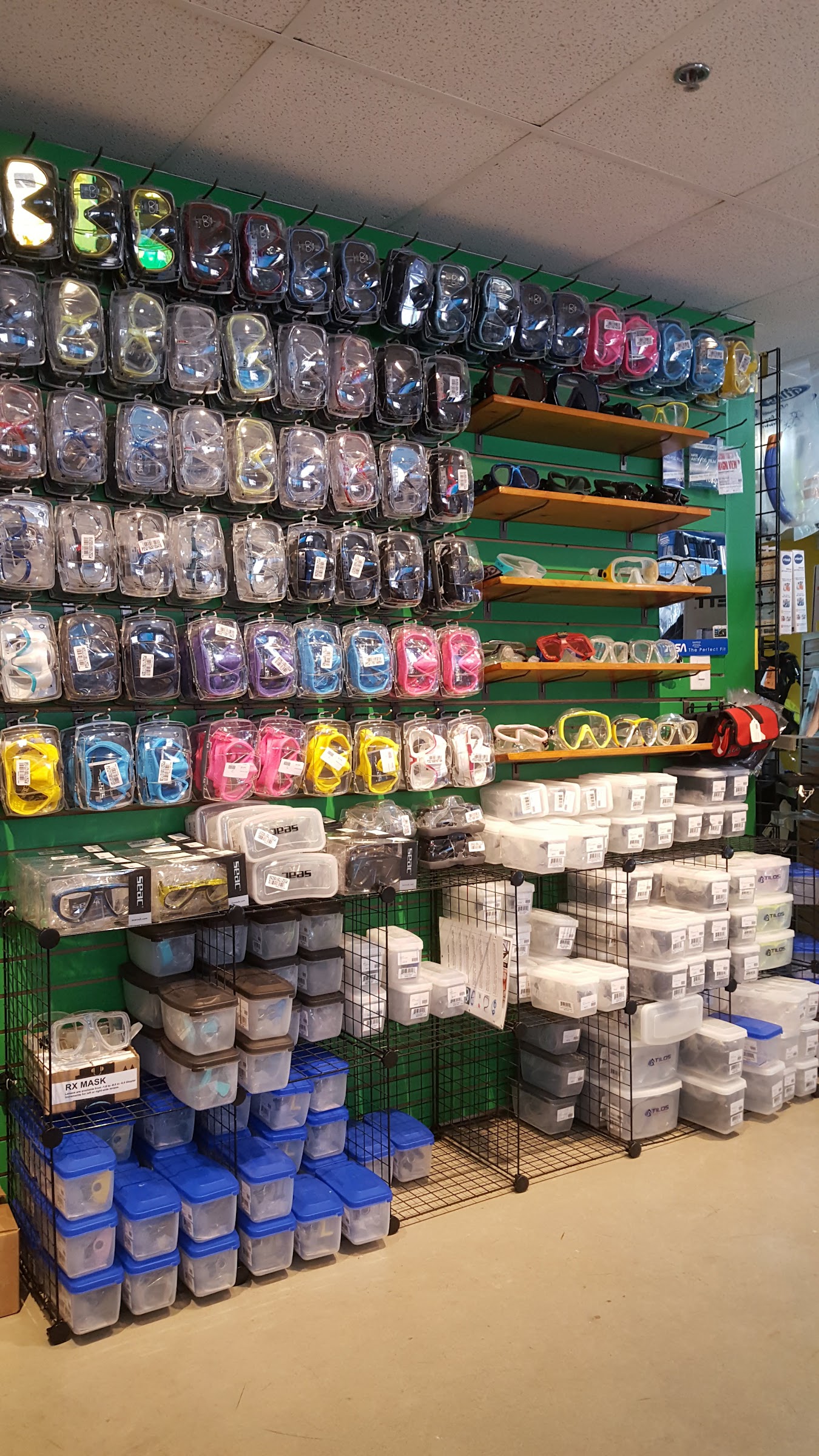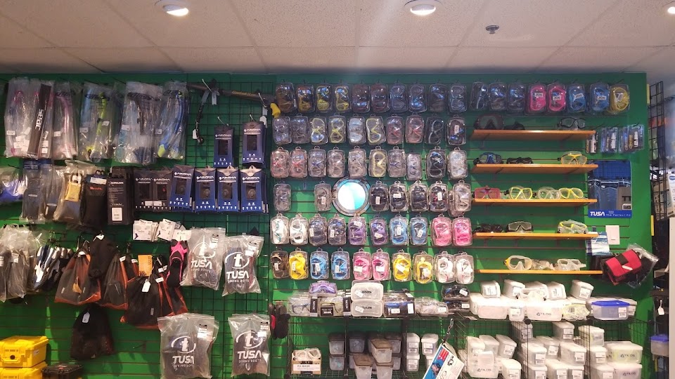 Swimwear, scuba gear, wetsuit and fin shop offering diving lessons, courses and tours.