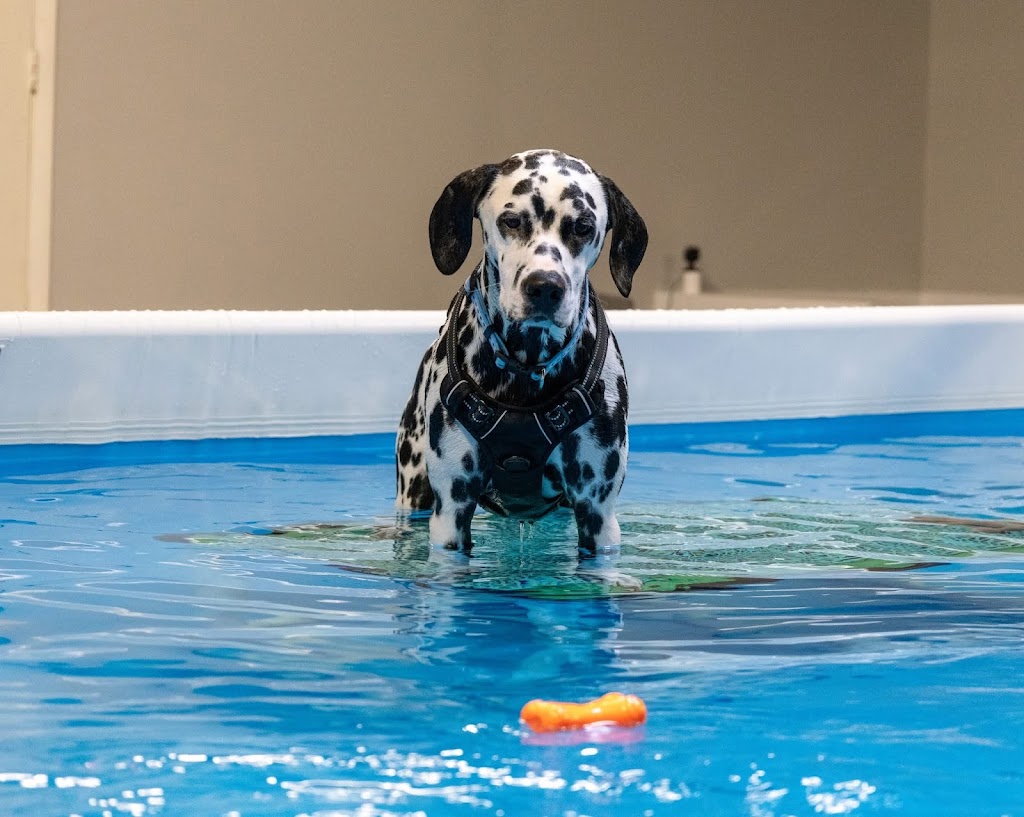 The facility maintains its indoor swimming pools at a consistently warm temperature of 85-88 degrees Fahrenheit, which is ideal for canine comfort, joint health, and therapeutic benefits.