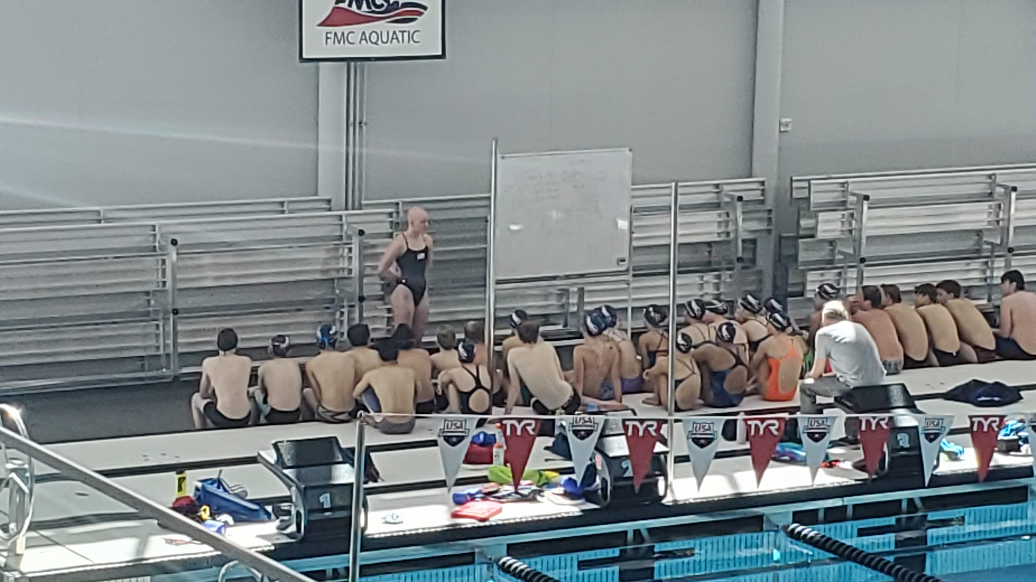 The competition pool at FMC Natatorium is typically maintained between 78-80 degrees Fahrenheit (25.5-26.7°C), while the separate diving well is kept slightly warmer, usually between 80-82 degrees Fahrenheit (26.7-27.8°C).
