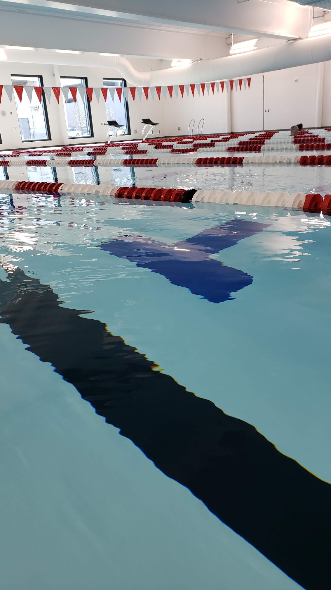 Indoor swimming pool facility hosting lessons and public swim times, plus water polo.