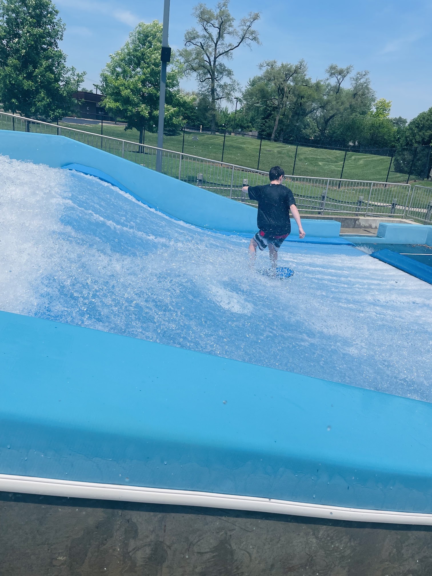 This place is super clean and has almost as many lifeguards as patrons. The surfing ride is great! It's safe and my kids enjoy. We really hope to enjoy ice cream from the vending again- it was so easy to use Apple Pay the first time, but again, today, it didn't work with Apple Pay. Ice creams looked a bit soft too. I only give 4 stars because the weekend house are only until 5pm and week days 7pm. Weekends should be until 7 also.