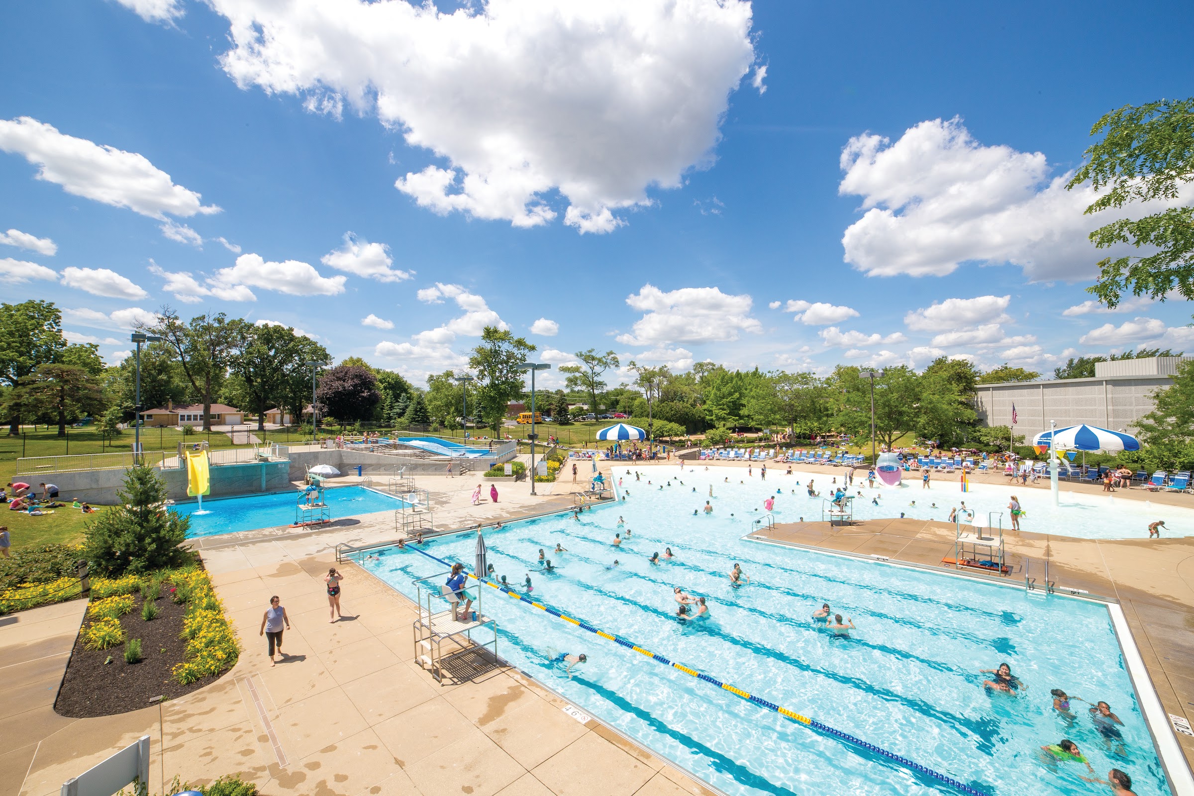 This is a great place to visit! It is open to both residents and non-residents of Glendale Heights, the fee for non-residents are higher than those of residents. The faucility offers a lot for both children and adults, the fee includes children area, 12' diving pool, wave Rider, main pool, play area and volleyball court. The downside is that the play area and volleyball court has 🐝, so be careful! But overall this is well worth the fee. If not for the 🐝 would be a five star location.