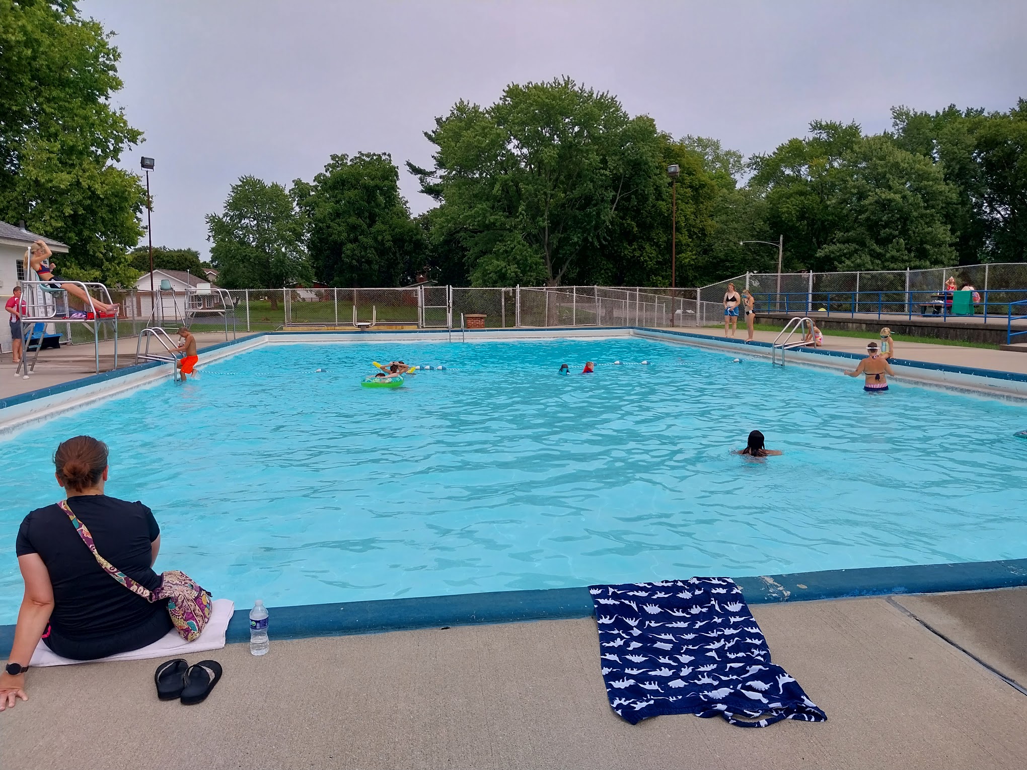 What are people saying (AI review summary)? The community pool receives mixed to positive reviews, especially from families with children. Daily admission ranges from $4-$5 per person, with season passes available for $35-$40 for individuals and $80 for families. Amenities include a diving board, a dedicated kiddie/toddler pool, changing rooms with lockers, and three wooden picnic tables with parasols, though no lounge chairs. Guests are welcome to bring their own food, drinks, and most water accessories. While generally clean, some reviewers note a strong chlorine smell in the evenings and its 75-year age means it isn't modern or fancy. Lifeguard supervision is mostly described as observant and friendly, with typically five lifeguards on duty, though there are isolated reports of inattentiveness or apathy from specific staff. The atmosphere is generally fun for kids, and it's not usually overcrowded. However, some evening experiences have been negatively impacted by disrespectful children lacking adult supervision, making it less ideal for adults seeking a quiet, relaxing swim.