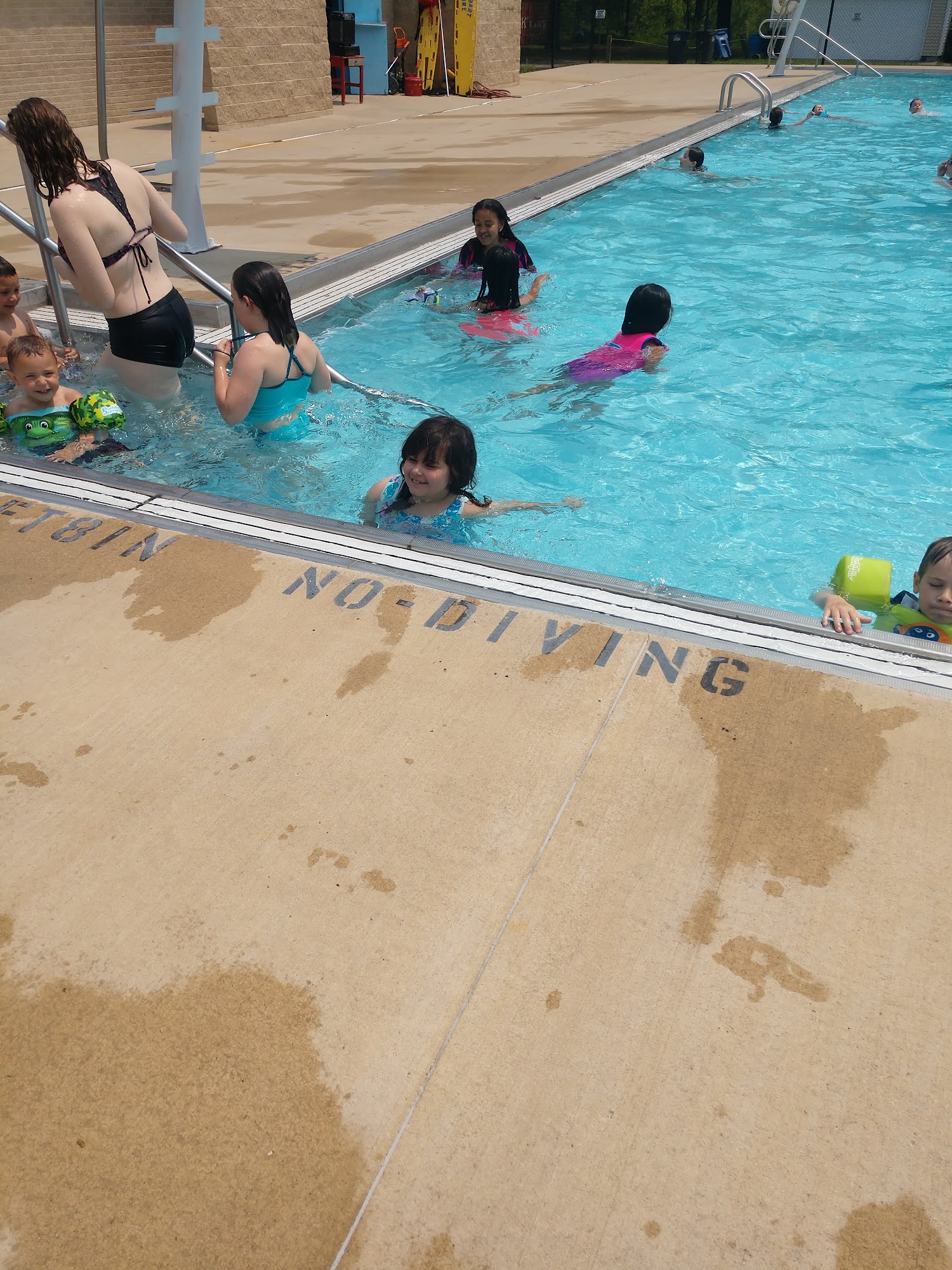 I visited for the first time as an adult with 3 children and it was a better experience than I expected. The pool is HUGE. They have life guards at every side, which is great for adults with multiple children. The pool is so fun! Even for adults. The kiddie pool had a splash pad area and a poolish vibe on the other side so smaller kids can swim. They have a nice amount of sitting chairs as well. They also have a concession stand with snacks and drinks. They charge $9 per person if you are not a lake station resident. I believe residents are only $5 perperson. It doesn’t matter if it’s a small child they still charge $9. It was clean and the life guards were kind and helpful! We will be back