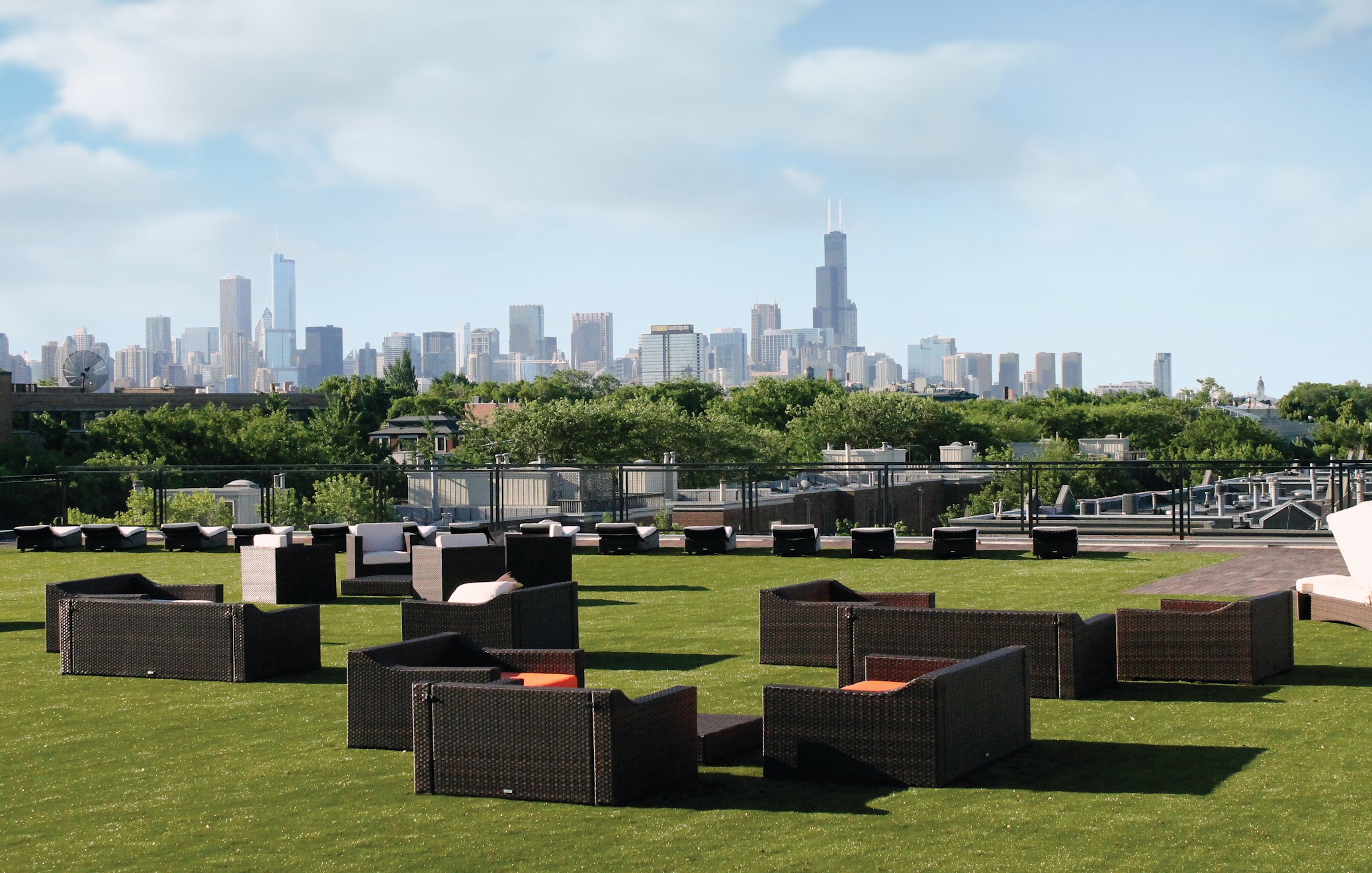 Health club featuring a rooftop deck, plus indoor and outdoor tennis courts and fitness classes.