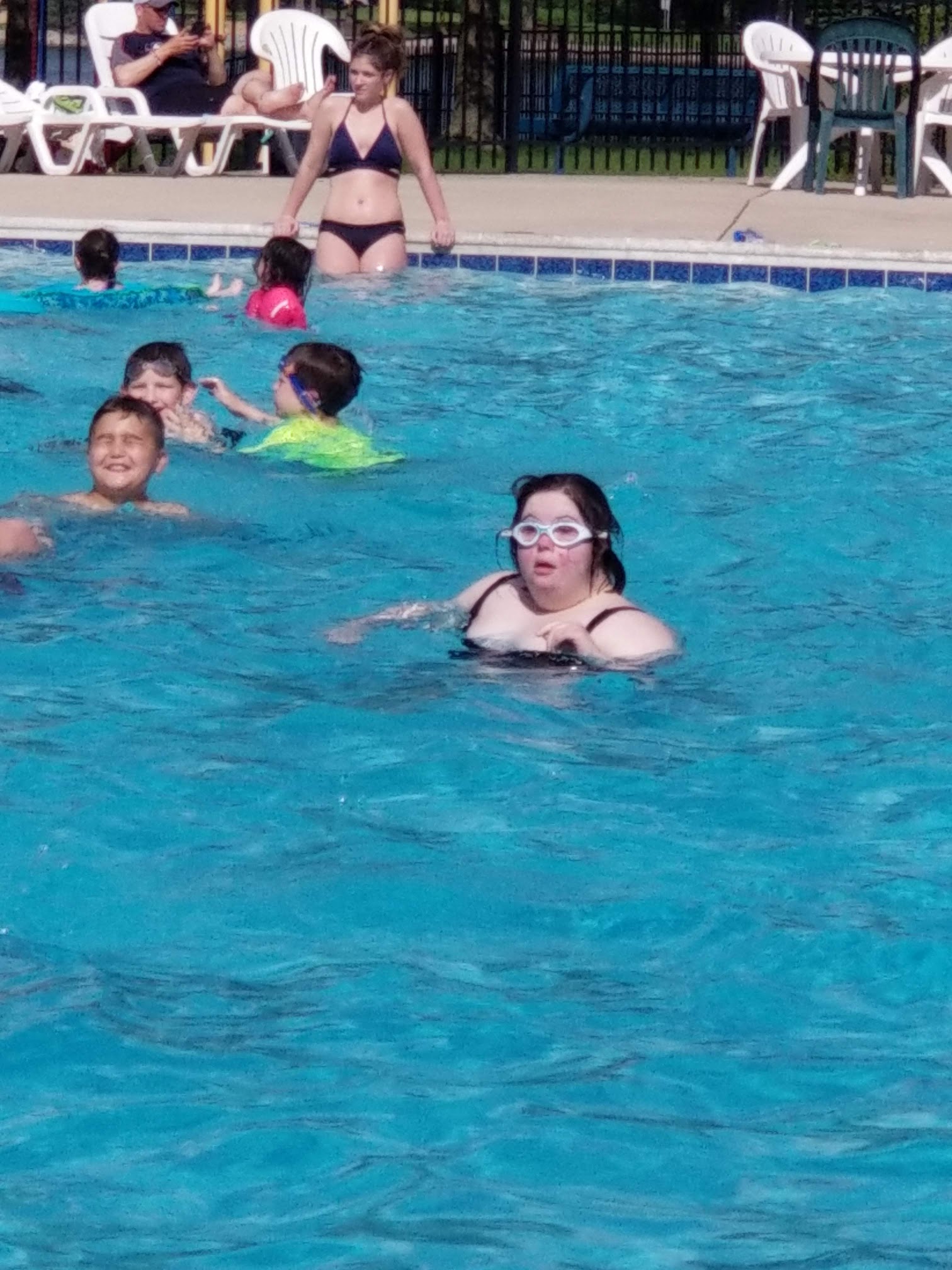 The lady at the desk was very friendly and so was the lifeguard. The pool depth ranges from 3 feet to 5 feet. Plenty of chairs, tables, and loungers poolside. Inside you can rent out the clubhouse for parties. They have a full kitchen, tv with couches and plenty of tables for your guests. Very roomy clubhouse.