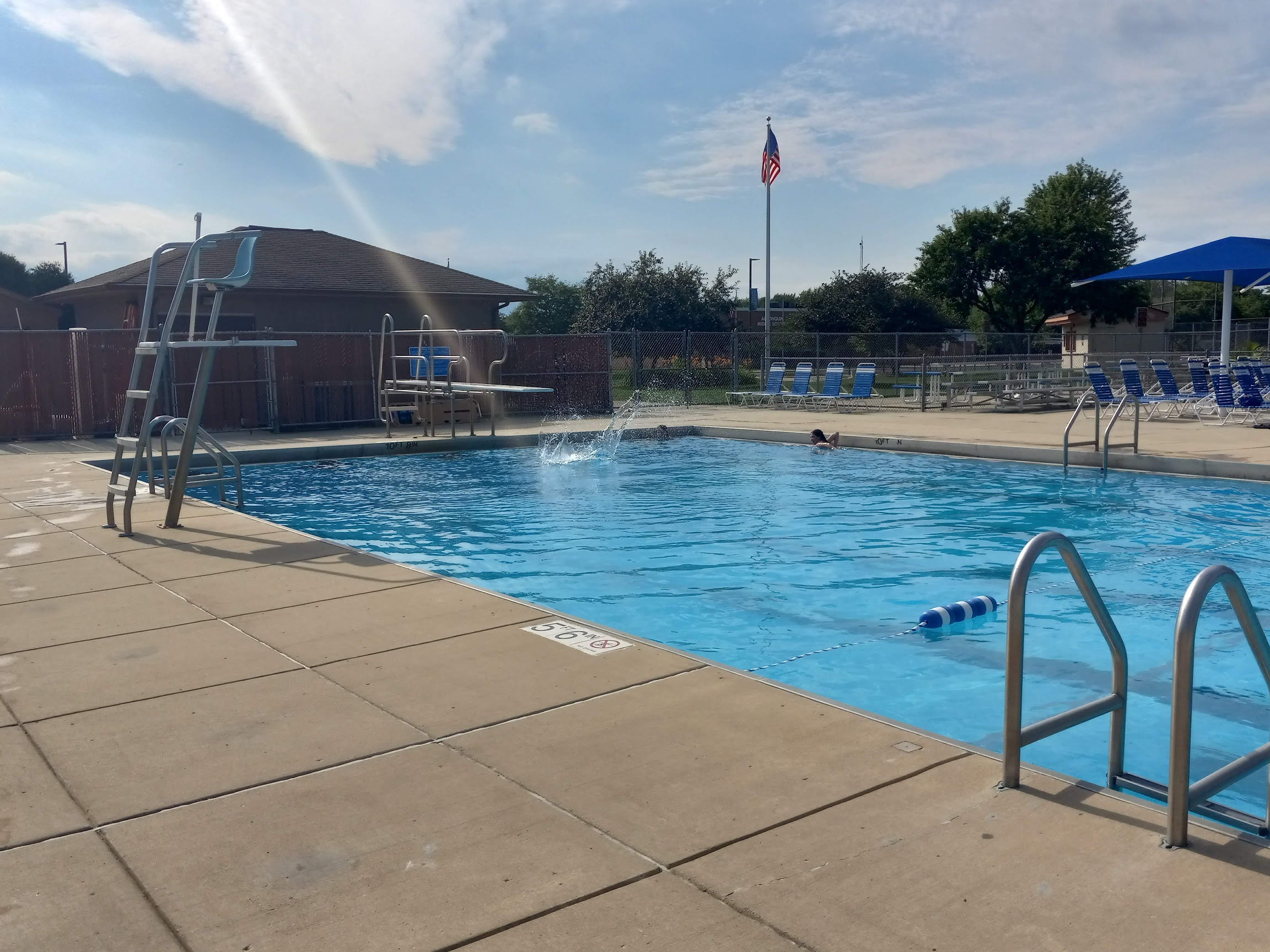 Pool is very clean and in good condition right outisde a park for options after swimming. The staff are nice and the food is well priced. The dive/deep area is my favorite part, such a ice area to go to!