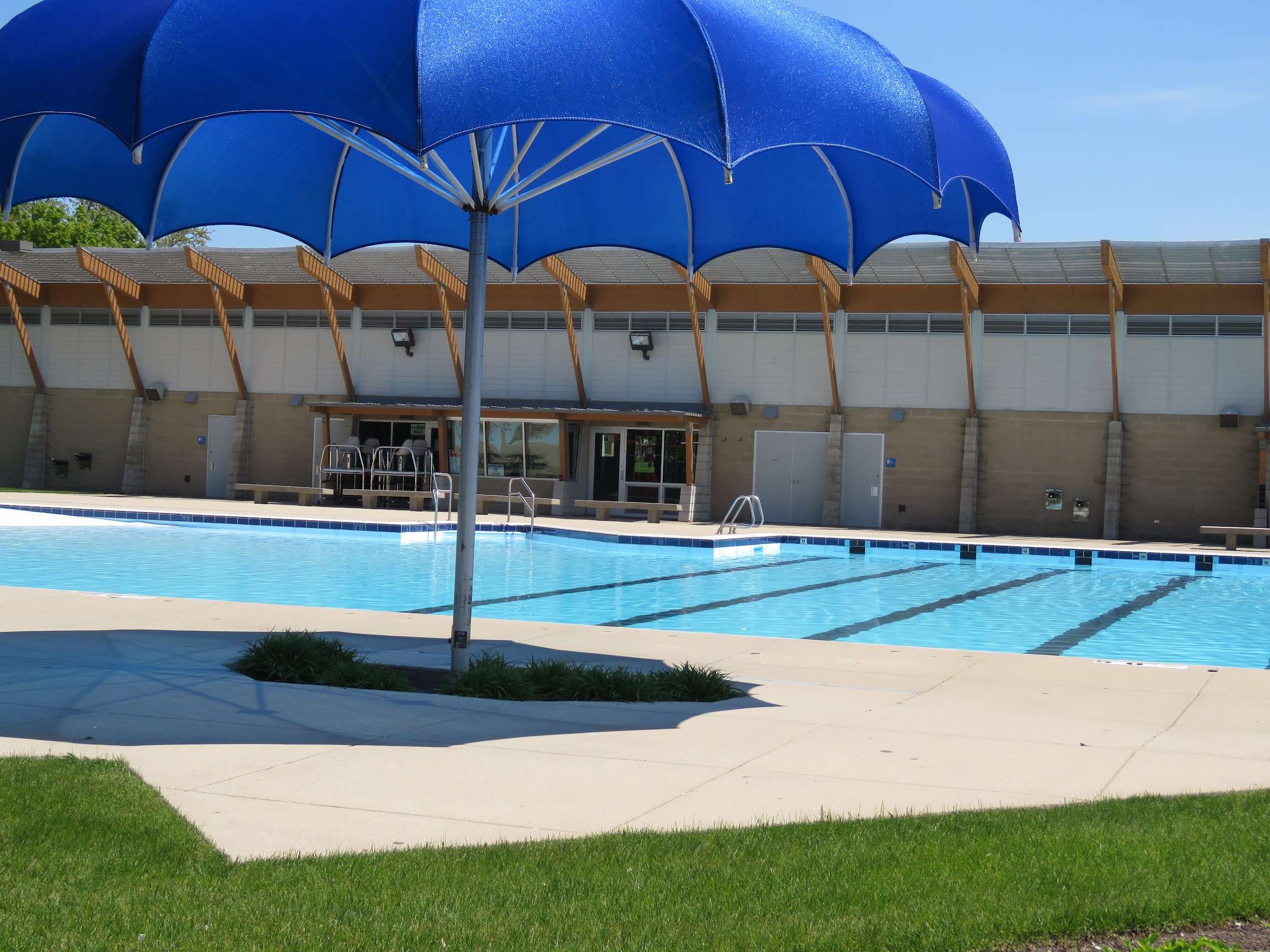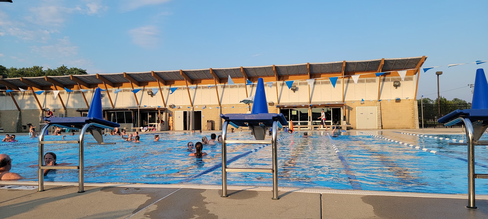 Nice pool that everyone all ages can enjoy. One side more for kids/families, the other side has a drop slide and diving board. In the middle is more for adults. The site advertises 8 swim lanes but usually only 3 are set up. On Saturdays if interested in using a swim lane expect to be sharing it the entire time