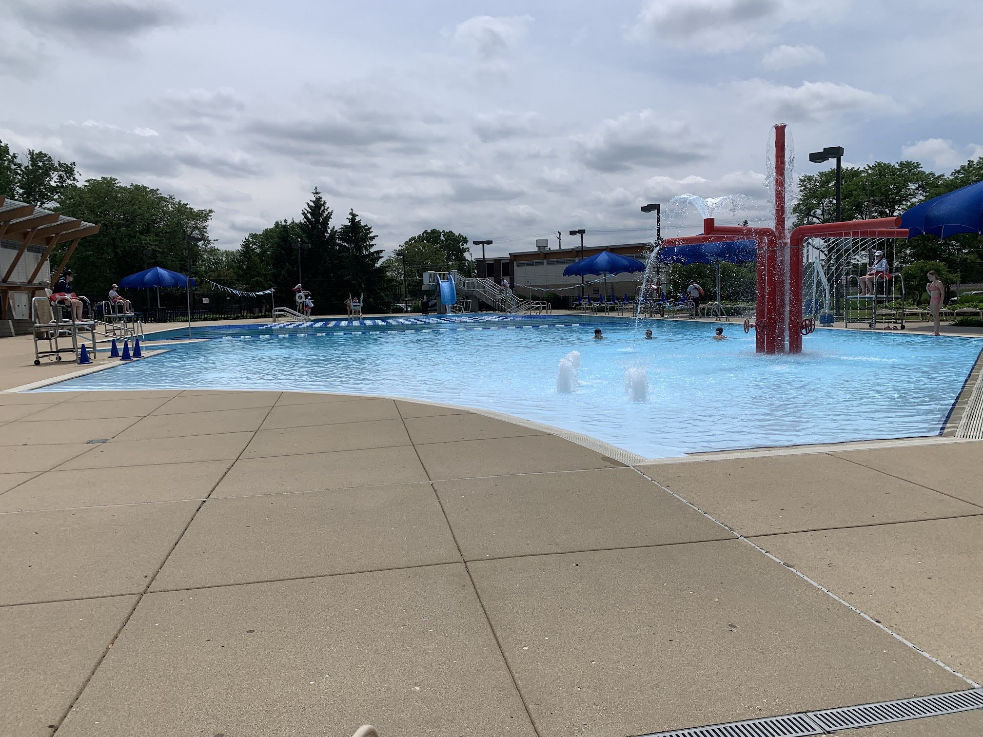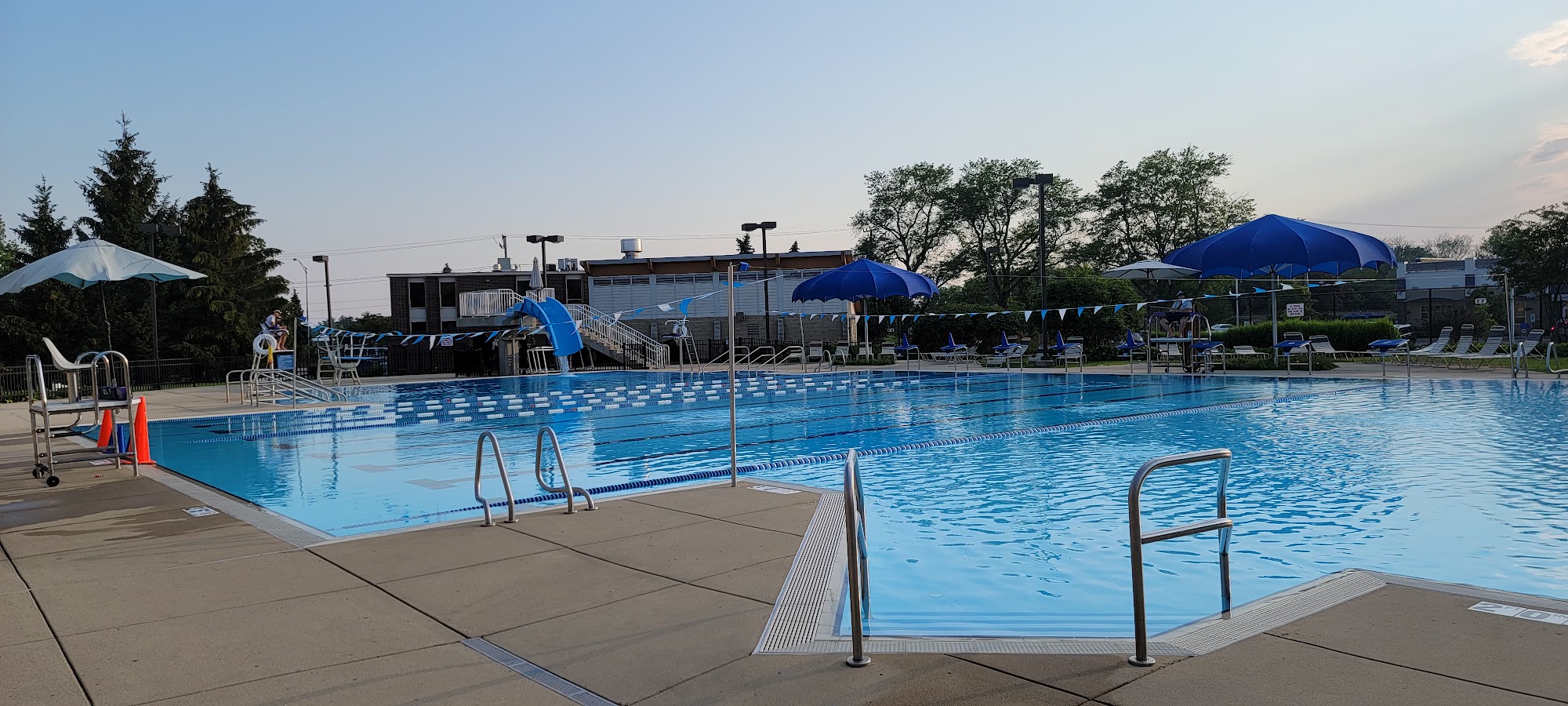 What are people saying (AI review summary)? The Meadows pool generally offers a nice atmosphere with distinct zones for all ages, including kids/families, a diving area, and an adult section. The pool temperature is well-regarded, and changing rooms/showers are noted as nice. Some visitors have praised the lifeguards for their attentiveness and focus on safety, particularly during events. However, there are several criticisms: the number of available swim lanes is often fewer than advertised and they are frequently shared with restrictive rules (adults only, no blocks); maintenance issues like a closed drop slide and a creaky diving board have been reported; there's a lack of on-site concessions or a store; and some guests found lifeguards to be rude. A significant negative incident involved an older man exhibiting inappropriate behavior, causing discomfort and affecting guests' desire to return.