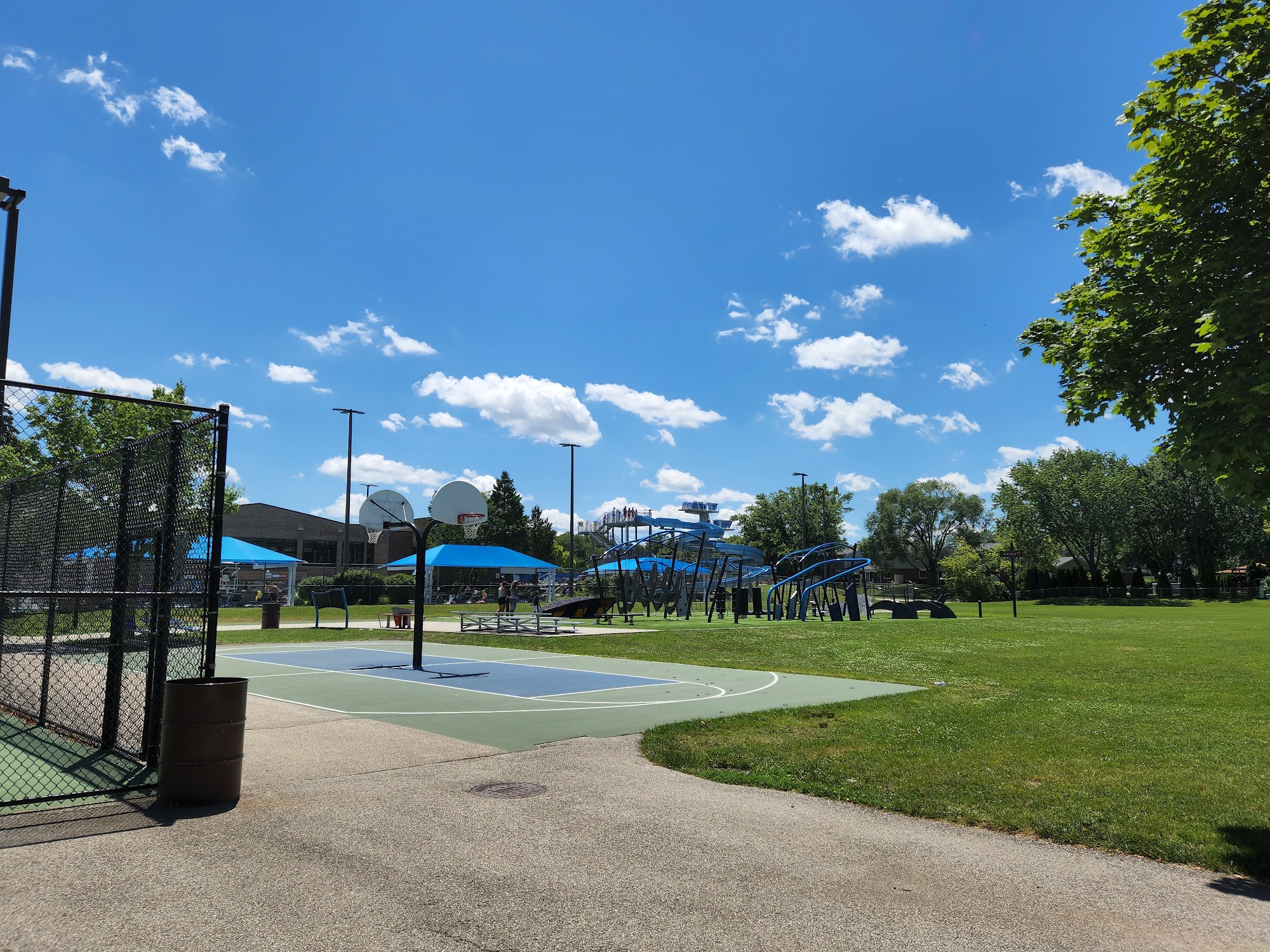 Great outdoor pool! Big fenced in splash pad, large Olympic size swimming pool, and then a separate pool with 3 different high dive options! Right outside the pool is a large playground, ninja obstacle course, basketball court, baseball field and tennis court