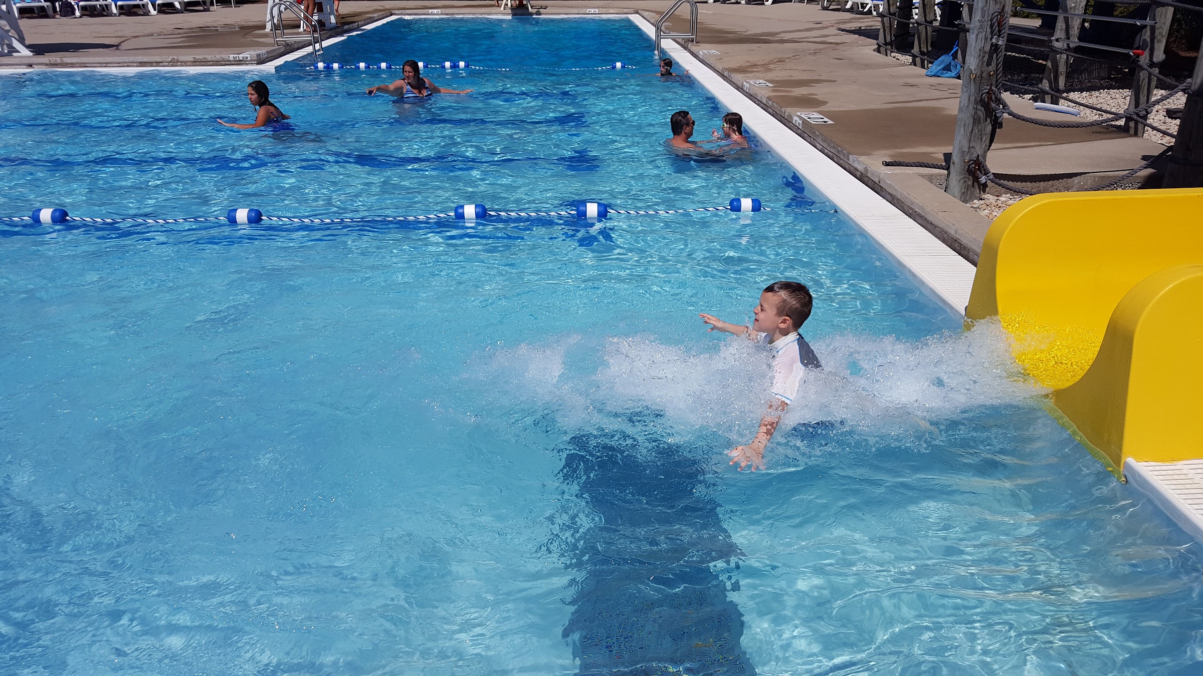 What are people saying (AI review summary)? This aquatic park is highly praised as a 'first-class' and 'wonderful' destination, well-suited for all ages. It offers zero-depth entry and kiddy play areas for small children and beginner swimmers, alongside bigger slides, a pool, and a deep dive board for older kids and adults. The park provides ample shaded sunchairs and is noted for its attentive and helpful lifeguards. While generally less crowded than the East End pool, its shared parking lot can occasionally become packed. A key point of contention for some reviewers is the policy prohibiting children under two years old from the swimming area, even with adult supervision. Overall, the sentiment is very positive, though it closes earlier than the East End pool.