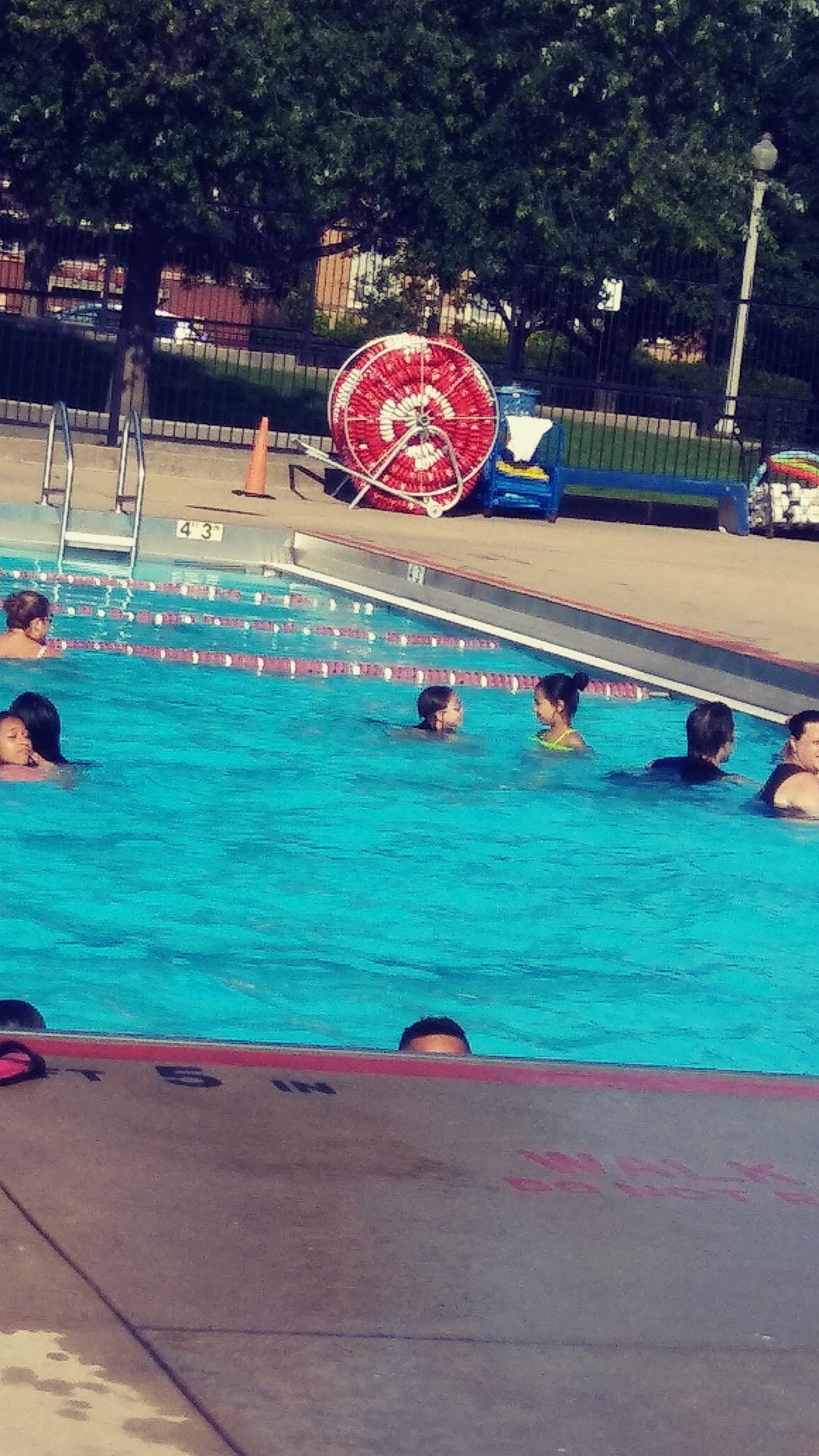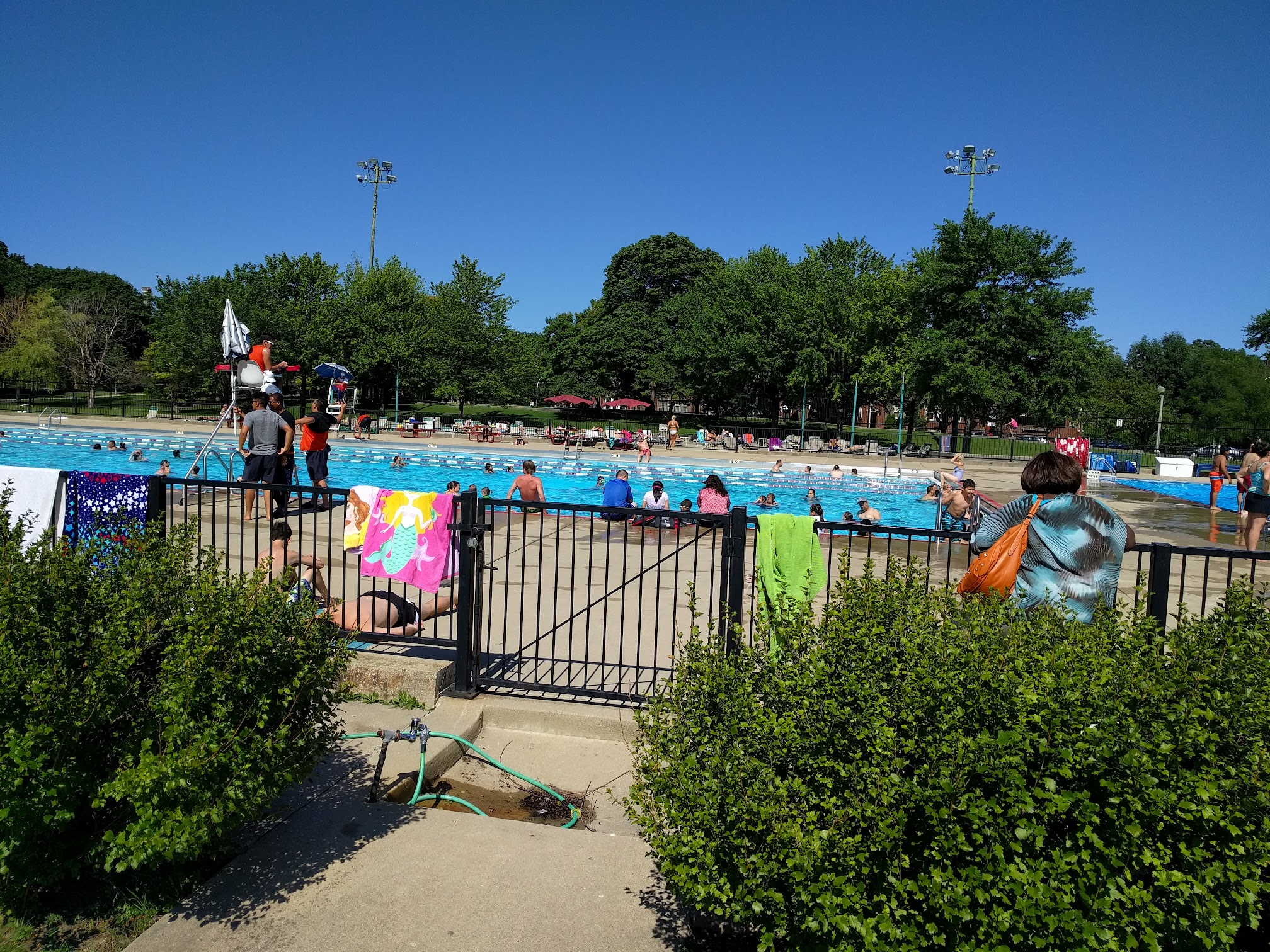 Nice neighborhood pool that's a good size and has many open swim hours. Also has a full size 5 meter + 3 meter + 1 M diving board. Also two separate areas to lay out and catch some rays.