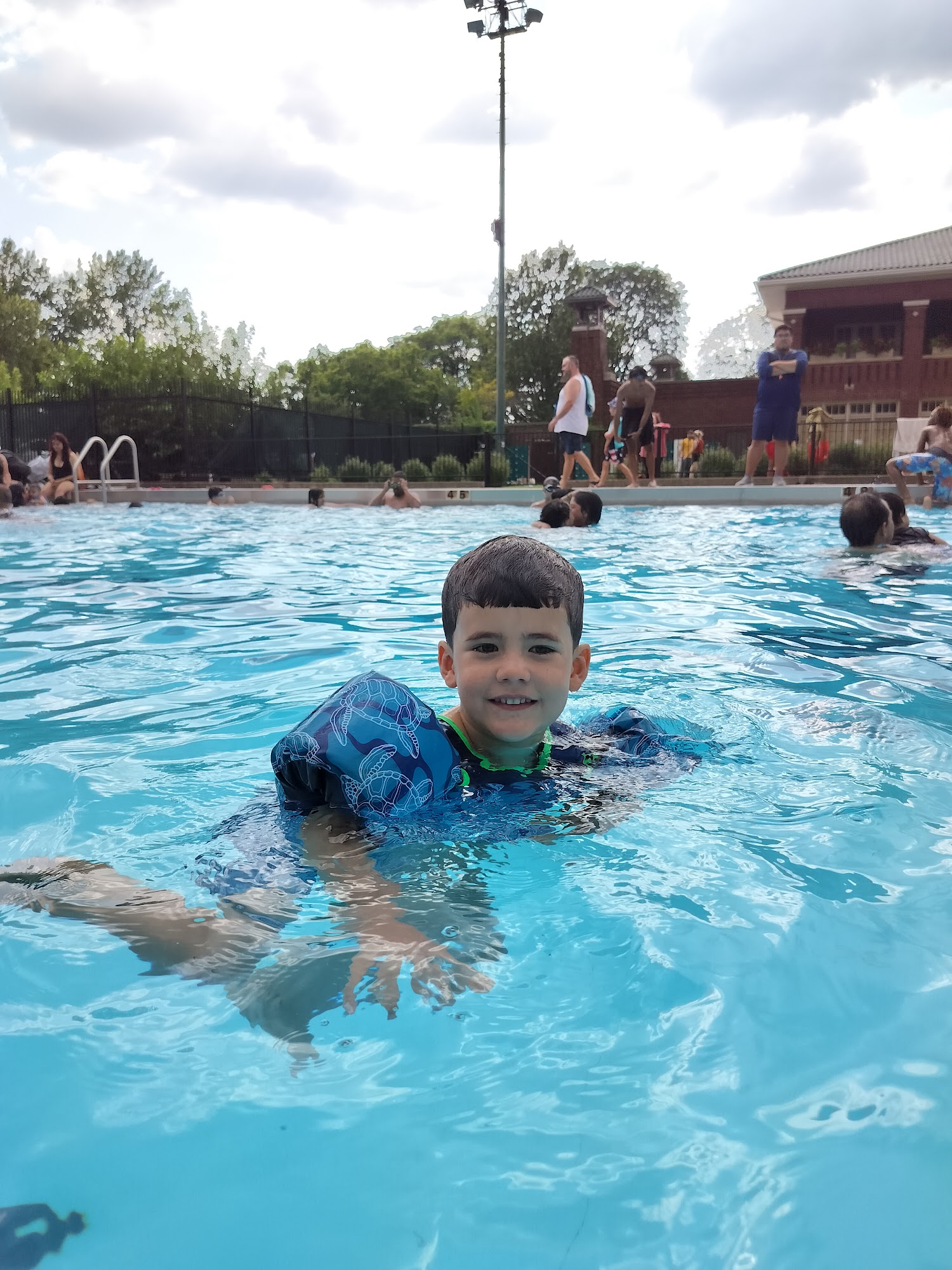 Large pool. Love that there is an adult side of the pool sectioned off. It is a PUBLIC pool inspite of other reviewers said. There is open swim almost everyday for everyone