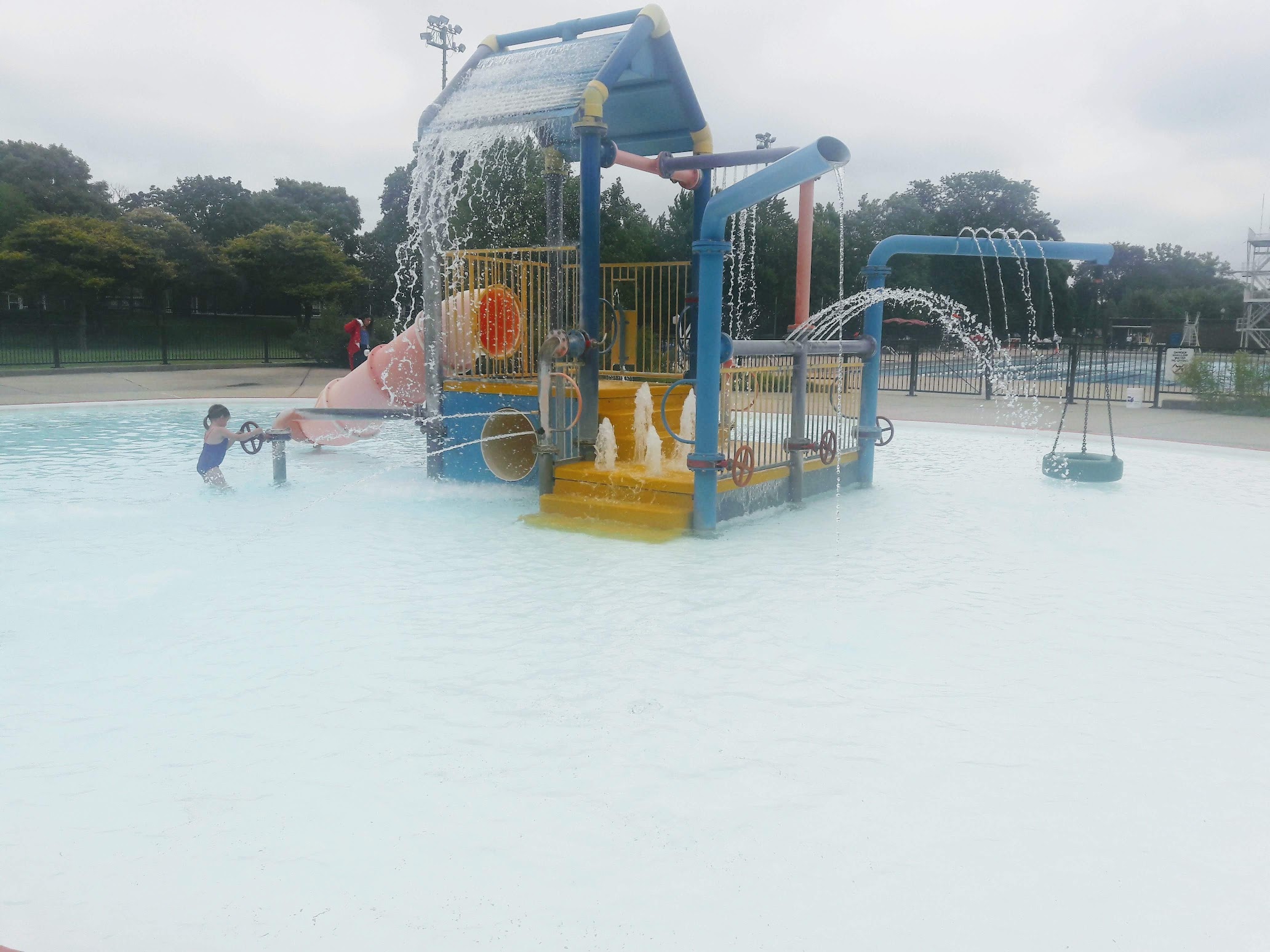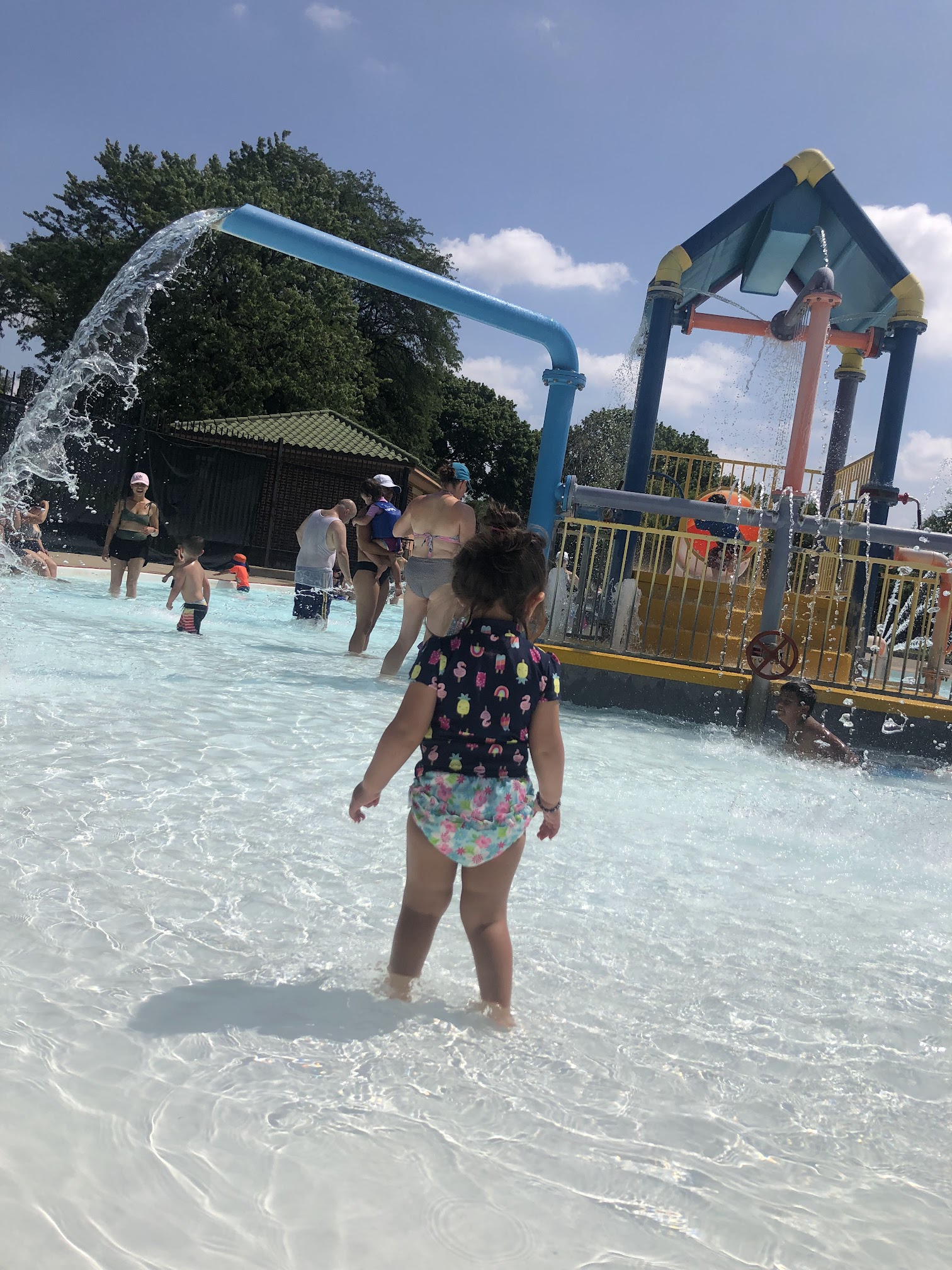The water can be insanely cold, which is weird because it's for the little ones. But there are fun structures for them to play with. Please watch your child! It may not seem deep but kids can lack the motor skills or be too overwhelmed to simply sit up or right themselves in the water. It can be traumatizing for them, and that's no fun. So keep it fun over there! Also Wear only white cover ups Wear a swimwear not athletic gear Bring a lock to lock up your bags and leave the stroller in the car if possible Your baby needs swim diapers And only US COASTGAURD APPROVED vests are allowed The rules may seem excessive but if you follow them you'll have a more enjoyable experience. Getting into an argument with someone there won't change the rules and may ruin your day... I'm not sure who to complain to if you don't like it but in order for you to have a good visit currently you should follow those rules I listed and I'm sure there are more. Have fun!