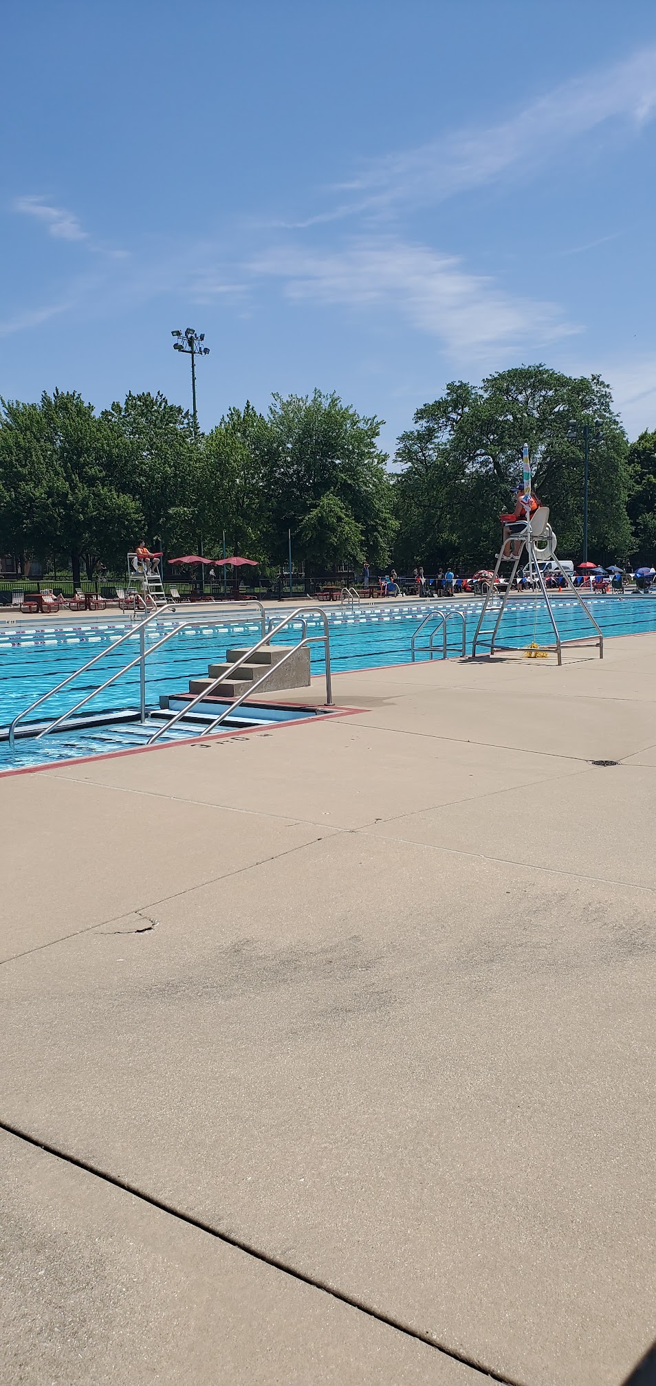 As a sprayground or splash pad, Portage Park Water Playground typically uses unheated water for its interactive features. Specific temperature controls or consistent pool temperature data are generally not applicable or publicly available, as the water temperature fluctuates with ambient conditions and the municipal water supply, rather than being a temperature-controlled pool.