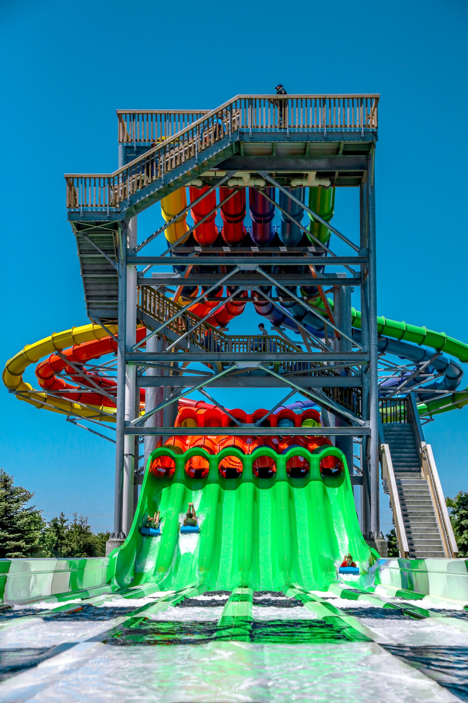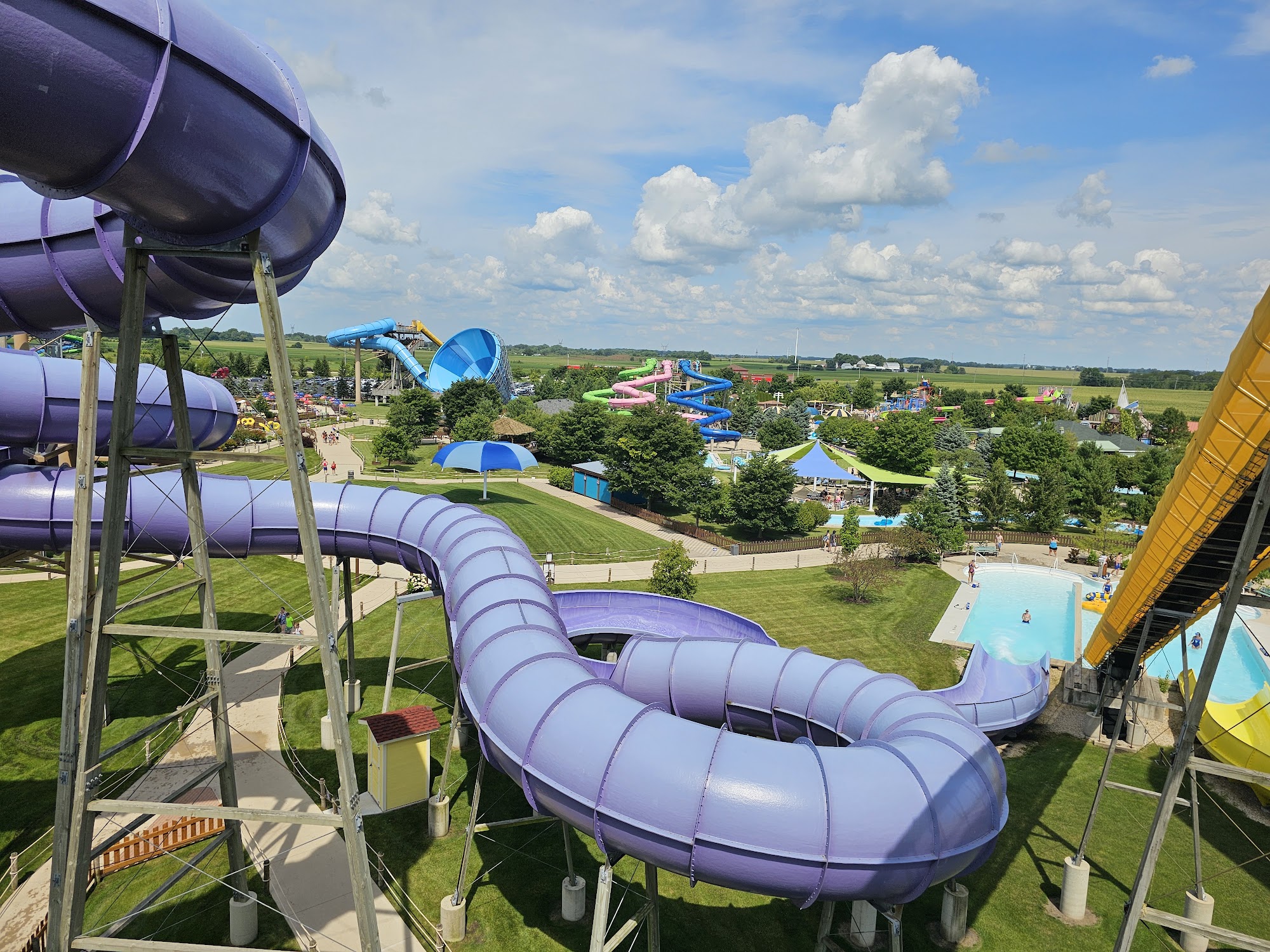 This was our first visit and we’re disappointed. I understand they’re at the end of the season so are more short staffed. But how do you not allow food into the park but then only have one place open to eat? I wasted 30 minutes in line just to order food. You can see how long the food line is in my pic. For being the largest water park in Illinois it was underwhelming. Lines were long and moved slowly and we weren’t even there when it was that crowded. And really didn’t feel that large. We were there 4 hours and rode 5 slides and hung out in the wave pool. For the price we paid I expected more.