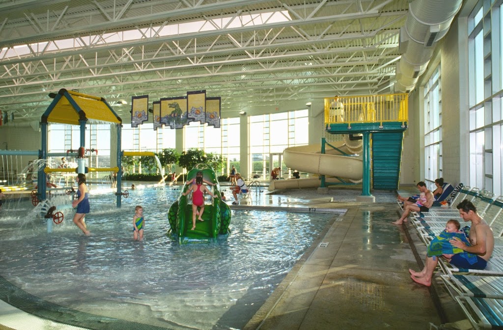 Indoor pool at Bartlett Community Center with a 12-foot waterslide, a diving board and lap lanes, plus open swim.