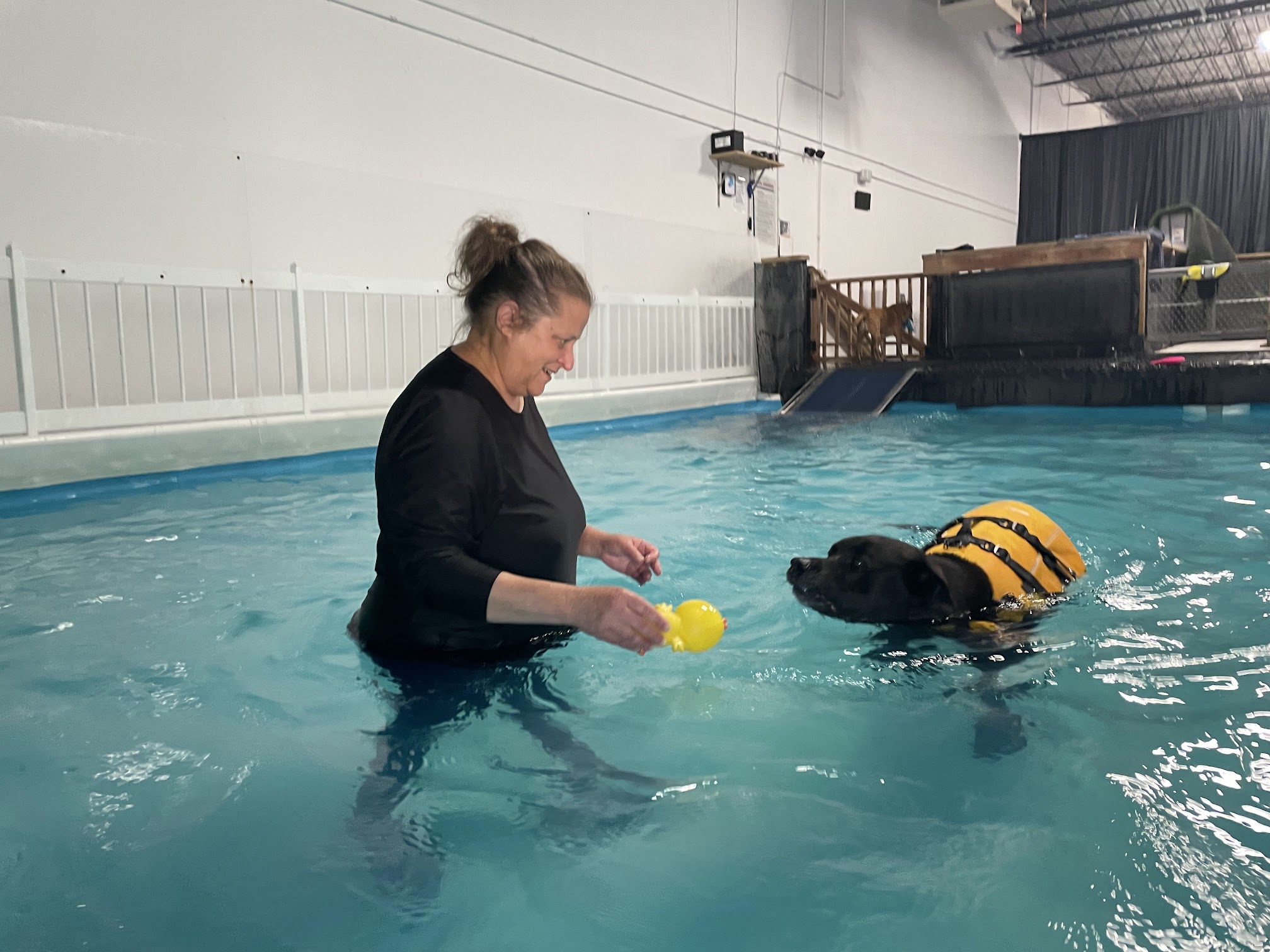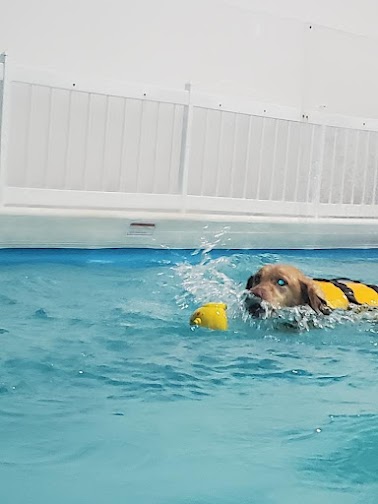 Our senior pup has been loving her chance to swim! She struggles with arthritis in her hind legs but swimming has been a great activity to limit the impact and strengthen her body. Laurie is wonderful about helping her gain confidence in the water and providing suggestions to keep our pup happy and healthy as she ages. Now to start getting the other dogs in the pool too! UPDATE: We now have TWO in the pool! One gets her therapy while the other burns off some energy playing ball.