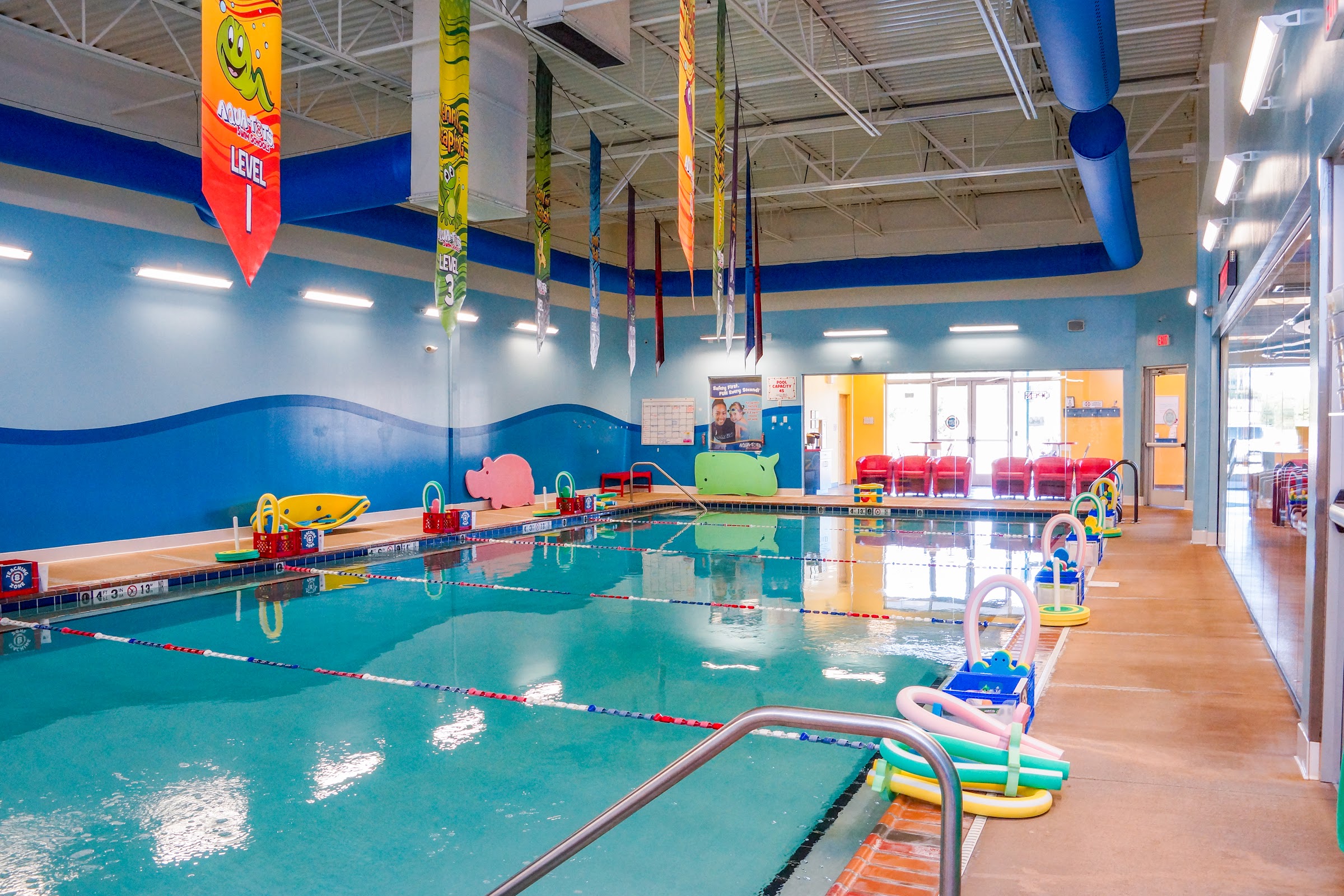 A great place to learn to swim. We love Noah and Alyssa for their clear teaching, smiles, and making swim fun and approachable. We had one lesson with a newer coach who hadn't learned my kids names yet (this has never happened before with the 5 previous instructors we have had .. there's only 4 kids in each class). According to my kid she didn't listen to them (kept shushing them - to be fair my kid talks a lot and has been known to interrupt) - I am hopeful it was just new teacher nerves and/or my kids were just getting used to a different teaching style, which is fine! It sounds like she was doing her job. At the same time, I'd love to see my kid smiling like he does with the other teachers. The interior of this location is looking a little run down in a few places, but it is kept clean. The staff are all kind and helpful and we got lots of swag when we signed up, which was fun. Overall, I'd recommend this location of aqua tots.