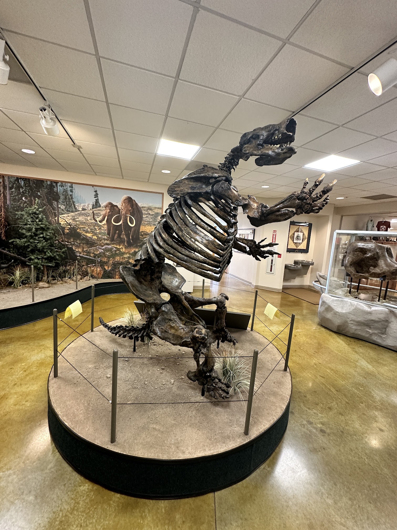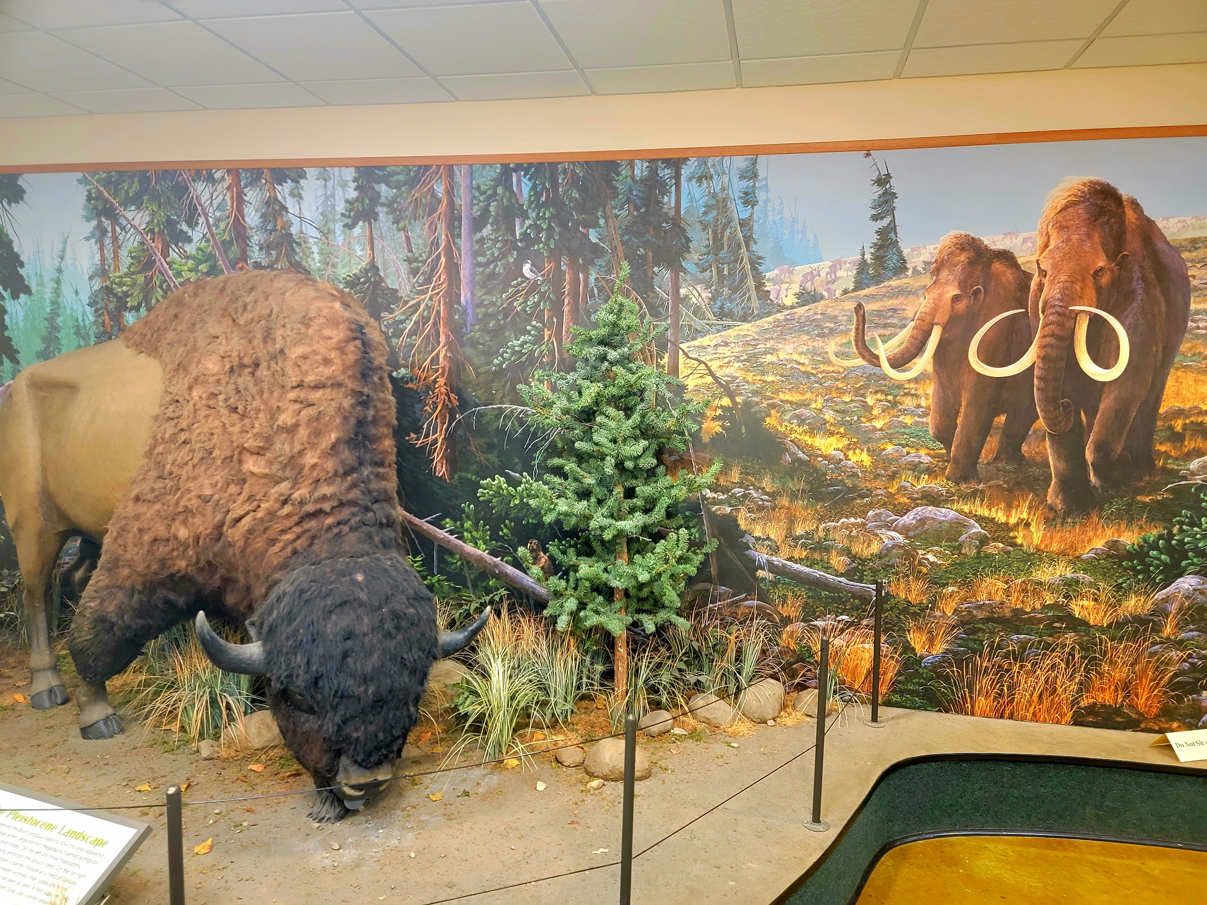It’s a short easy trail walk to see the bison. It’s better to go early morning before it gets hot. They are large and prefer cooler weather. We have been in several different months and have seen them many times. They come in to eat and are usually in the front pasture, they have been in the middle pasture which is walkable, around the fenced in area to the left side. Handicapped accessible pathway in back of gift shoppe shows mammoths and giant sloths.