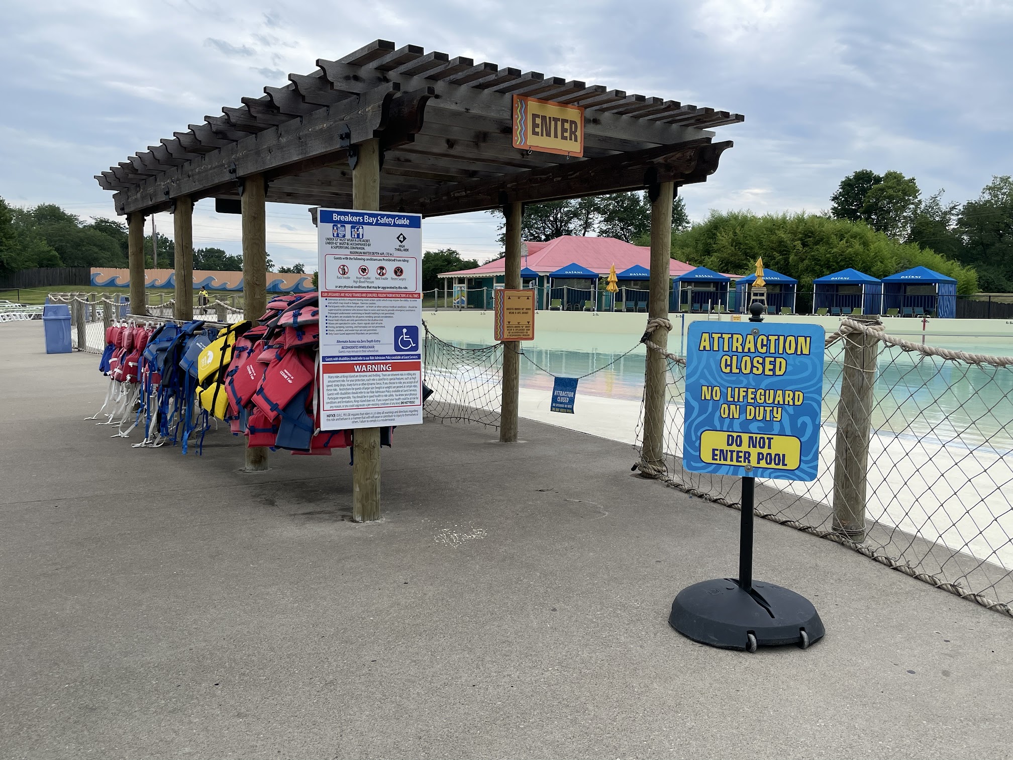 Breakers Bay is a large, exciting wave pool located within the Soak City Water Park at Kings Island, an amusement park situated at 6300 Kings Island Dr, Mason, OH 45039, USA. It simulates ocean-like waves, providing a fun and refreshing experience for guests of all ages, complete with a zero-depth entry for easy access.