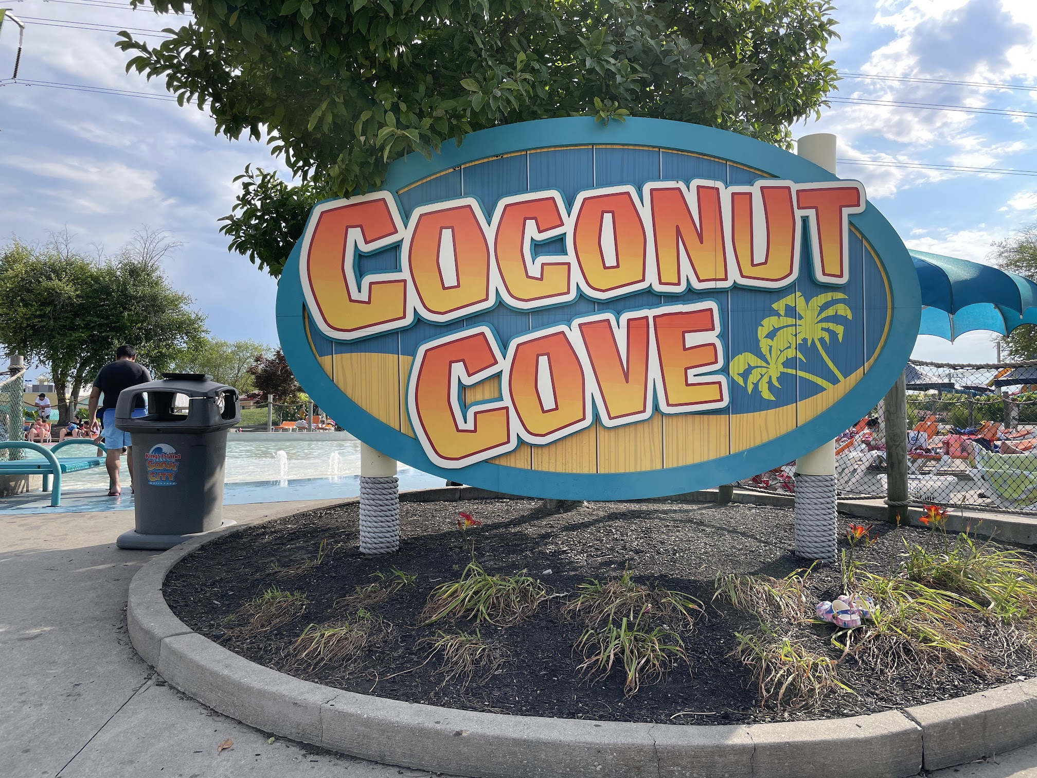Coconut Cove is an interactive children's water play area located within Soak City Water Park at Kings Island in Mason, Ohio. Designed for younger guests, it features multiple levels with sprayers, dumping buckets, small slides, and other engaging water elements, providing a safe and fun environment for kids to splash and explore.