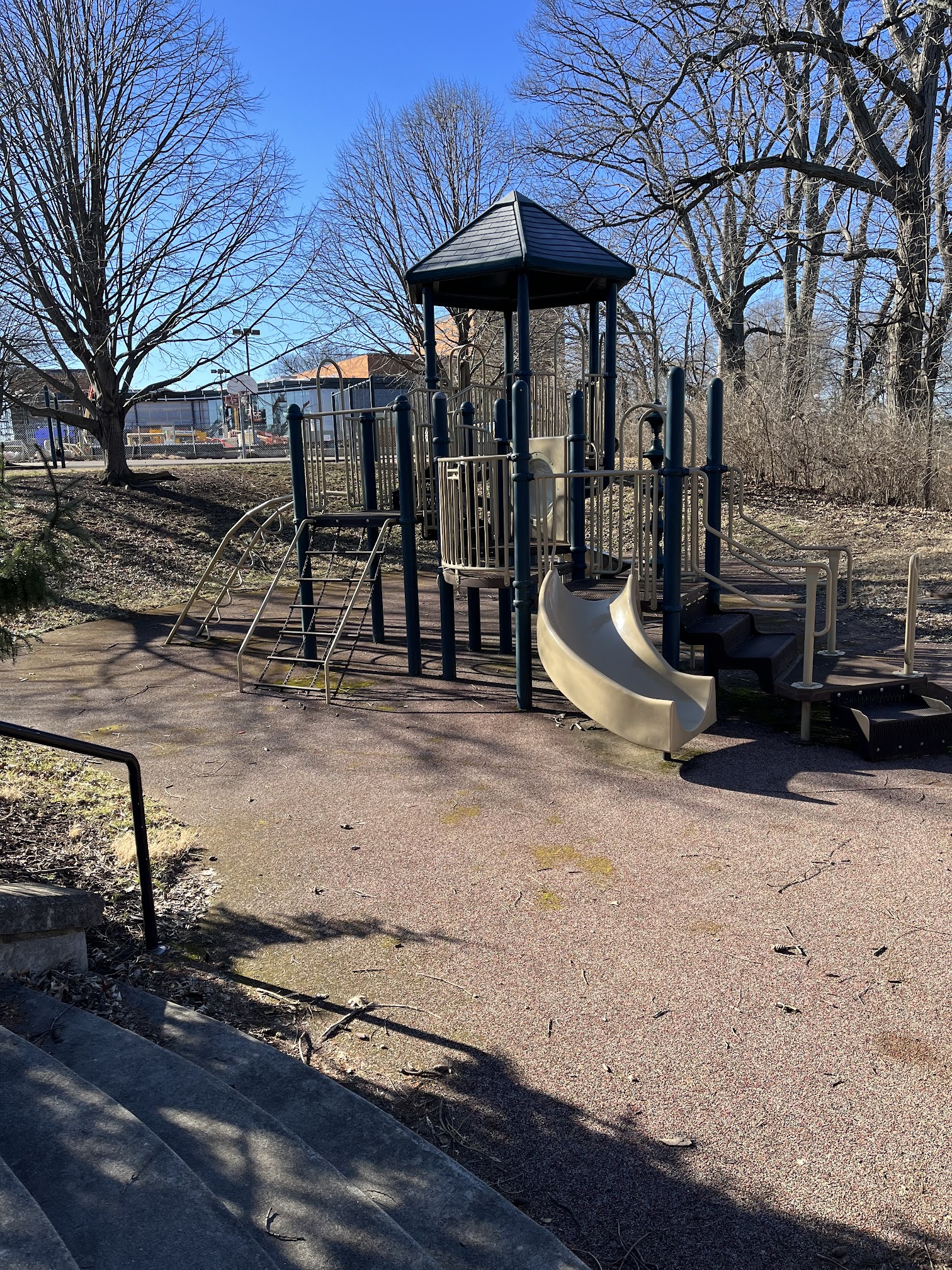 Pretty decent small playground with swings and a basketball goal right next to the pool. Between the pool building and renovated playhouse building.