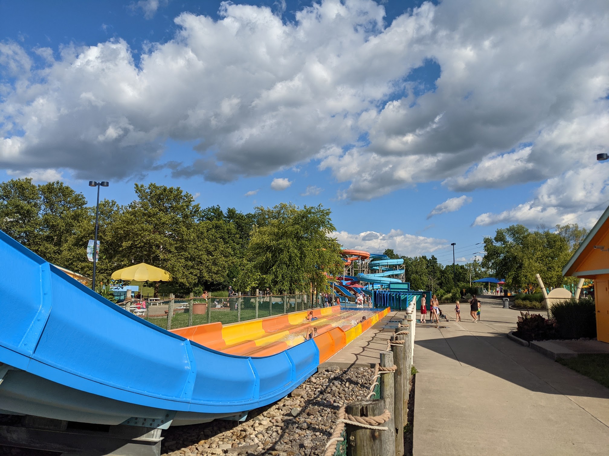 Love the water park. It's a very nice park........ But....... Don't go on a Saturday! It was jam packed, elbow to elbow. I felt like I was waiting in line for the beast circa 1995, just to get a drink. After waiting 20+ minutes I'm told all of the slushy machines are down :( bummer Fortunately we have gold passes and decided to cut our losses with a truncated visit. Still got sun burned! We're looking forward to a weekday water park adventure.