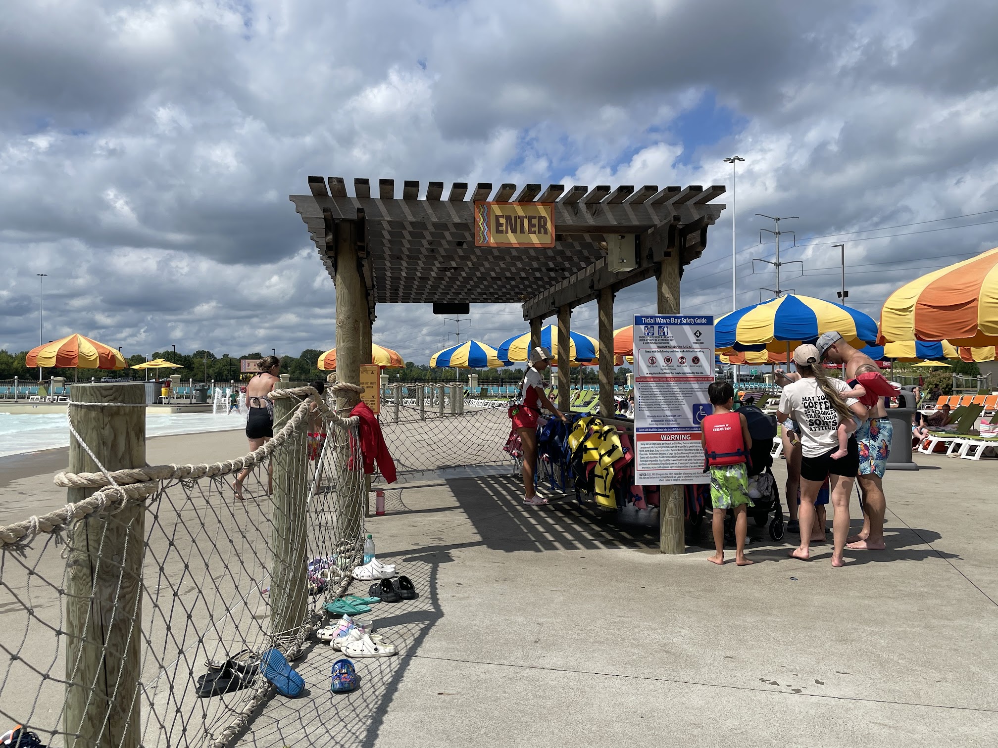 Tidal Wave Bay is a prominent attraction within Soak City, Kings Island's water park, located at 6300 Kings Island Dr, Mason, OH 45040, USA. It is a massive wave pool designed to simulate ocean waves, offering a dynamic experience for guests to swim, splash, and enjoy the surf as waves crash onto the shore.
