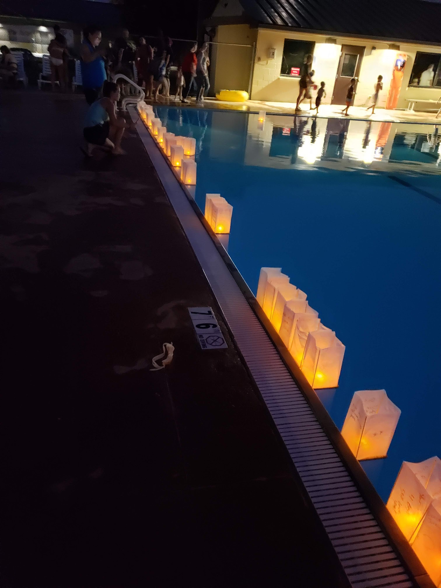 Large pool perfect for older kids/adults. Shallowest end at 4’6 and deepest around 9. Nice slides! On the hour there is a 10 minute break to test kids for the slides (must pass a swimming test) and adult swim.