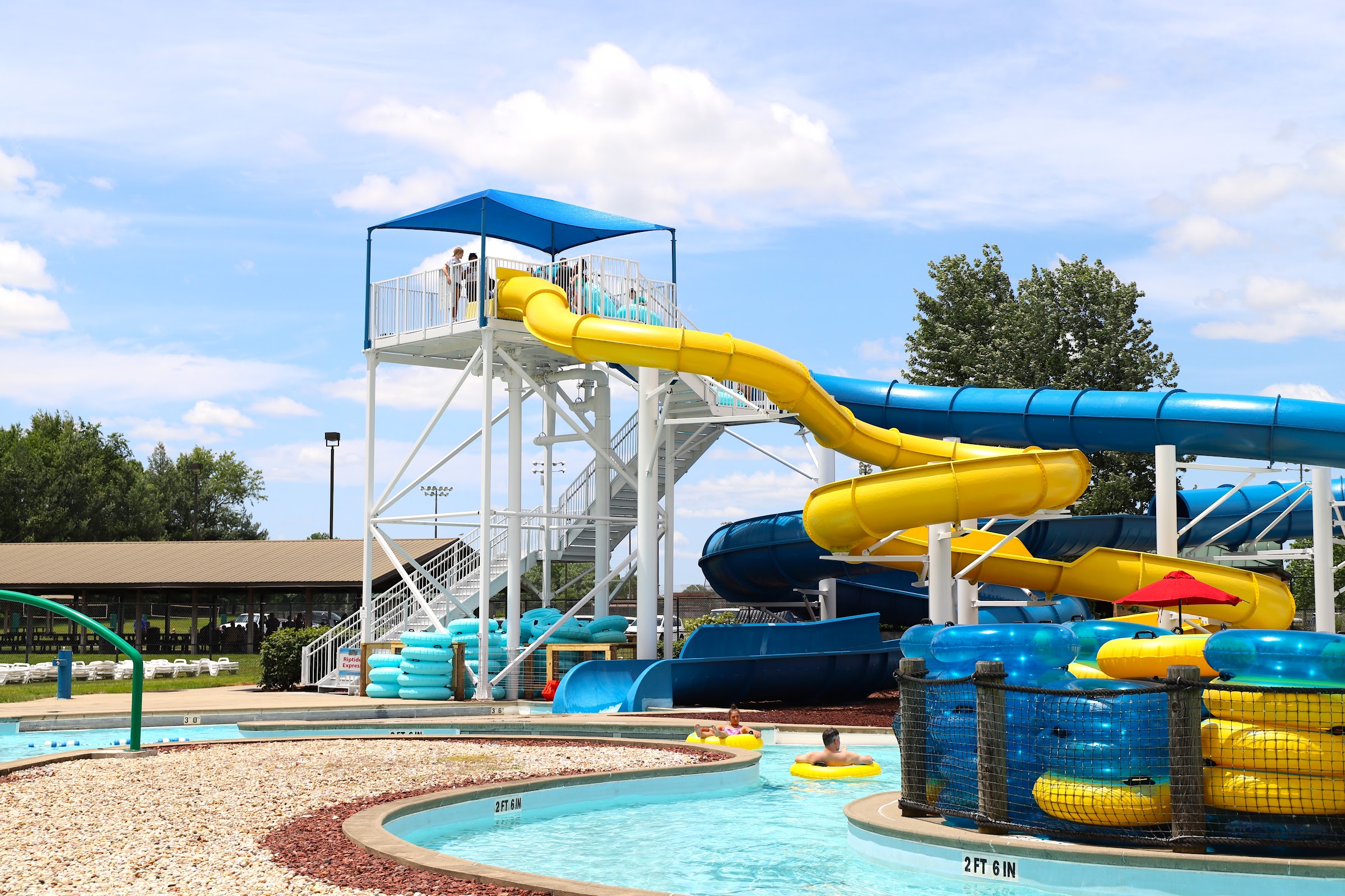 Decent size water park for families, yet when we went it was swarming with sweat bees. Also, having the kids get out every so often for 15 minutes so the adults can swim makes no sense when there is entire section that is only for toddlers. What is the point of making the toddlers get out of their section constantly?!