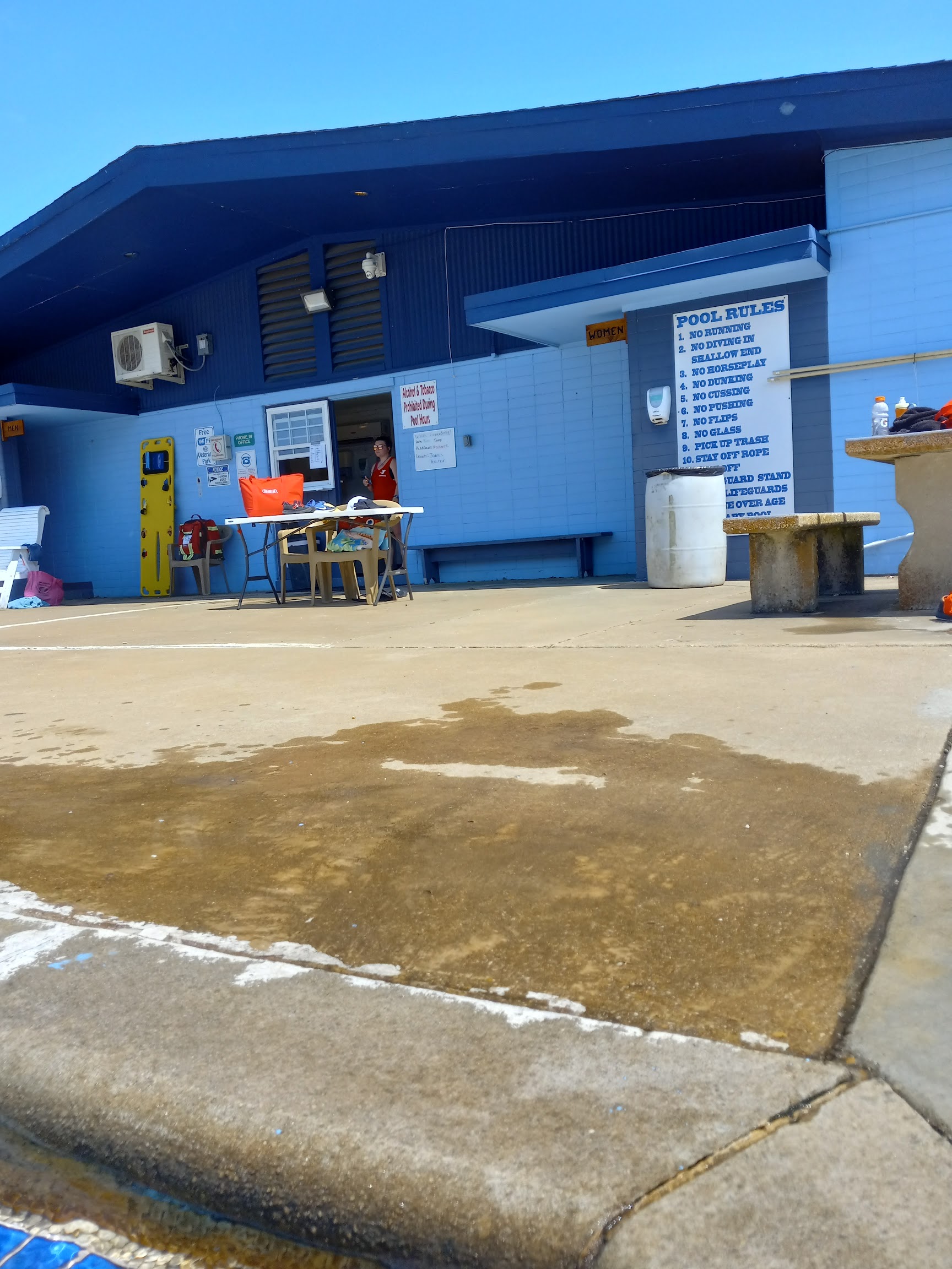 Its was a nice little neighborhood swimming pool. Friendly staff, girls change area bathroom was in need of some cleaning, was very reasonable for the cost of admission. Was sad to see the toddler area was blocked off and not able to enter. But still was really nice. Also really enjoyed the grass area and covered picnic tables. Was so much cooler on tender feet. :)