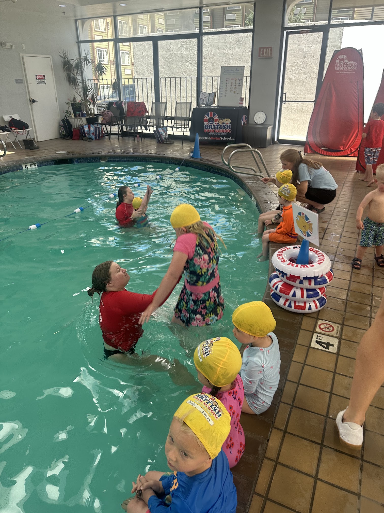 The indoor pool at this location is heated and typically maintained within a comfortable range of 84-86 degrees Fahrenheit, consistent with British Swim School standards for ideal learning conditions, especially for young children.