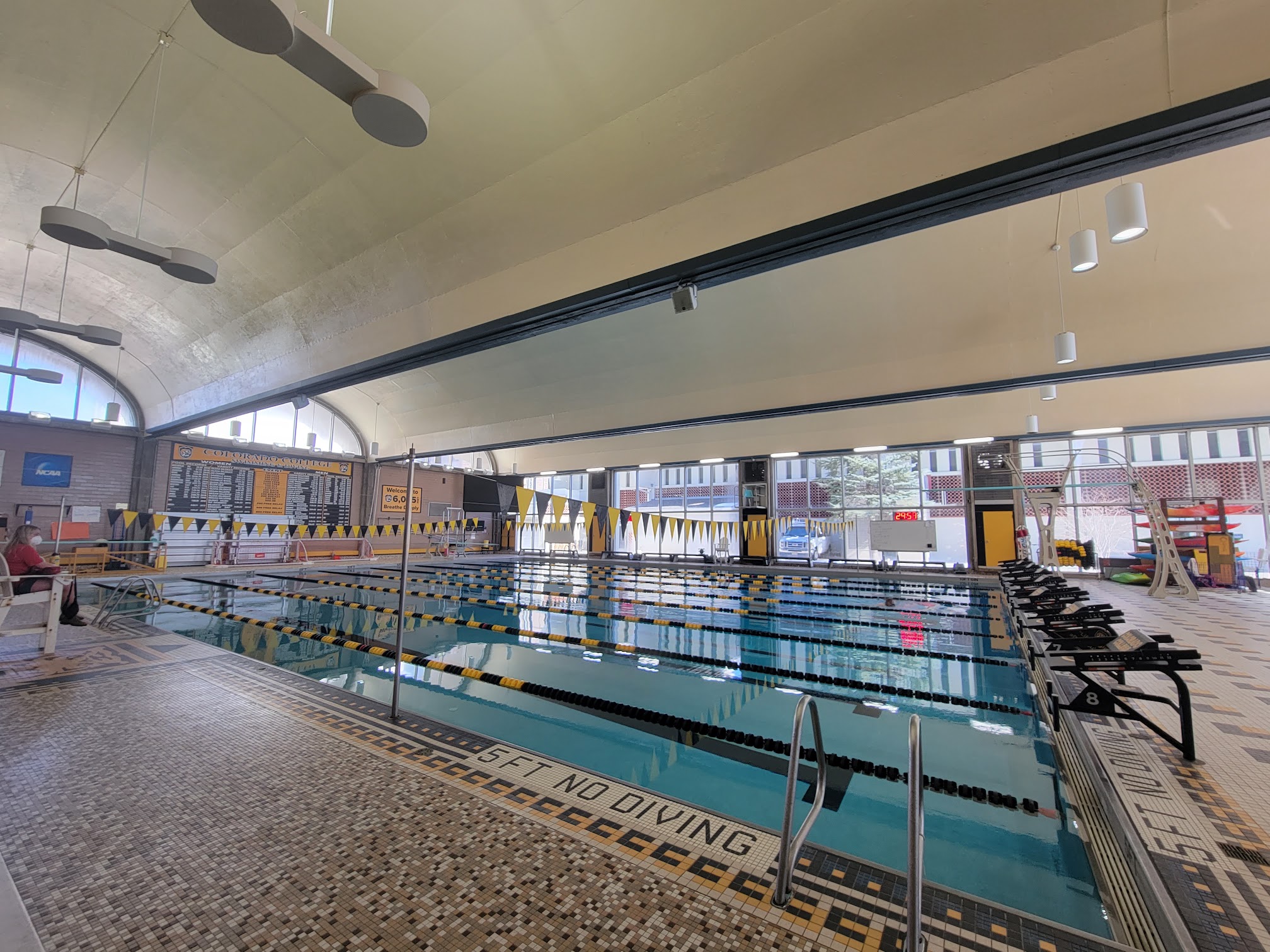 Schlessman Natatorium, located at 44 W Cache La Poudre St in Colorado Springs, CO, is a premier aquatic facility at Colorado College. It features an Olympic-sized 50-meter pool that can be converted into two 25-yard pools, complete with 1-meter and 3-meter diving boards. This facility serves as the home for the Colorado College swim and dive teams and is also utilized for recreational swimming and various aquatic programs.