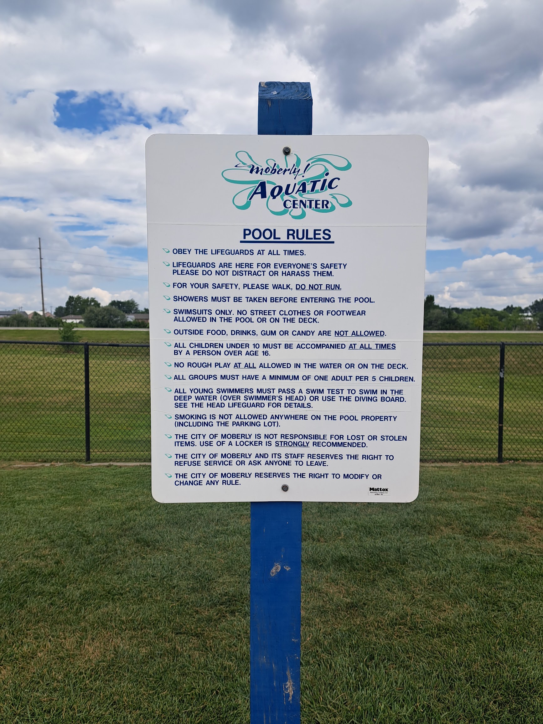 The Moberly pool is quite good. The entrance fee is now six dollars, which is a bit more expensive. The concessions are reasonably priced. The pool itself is high quality. Improved seating could be considered.