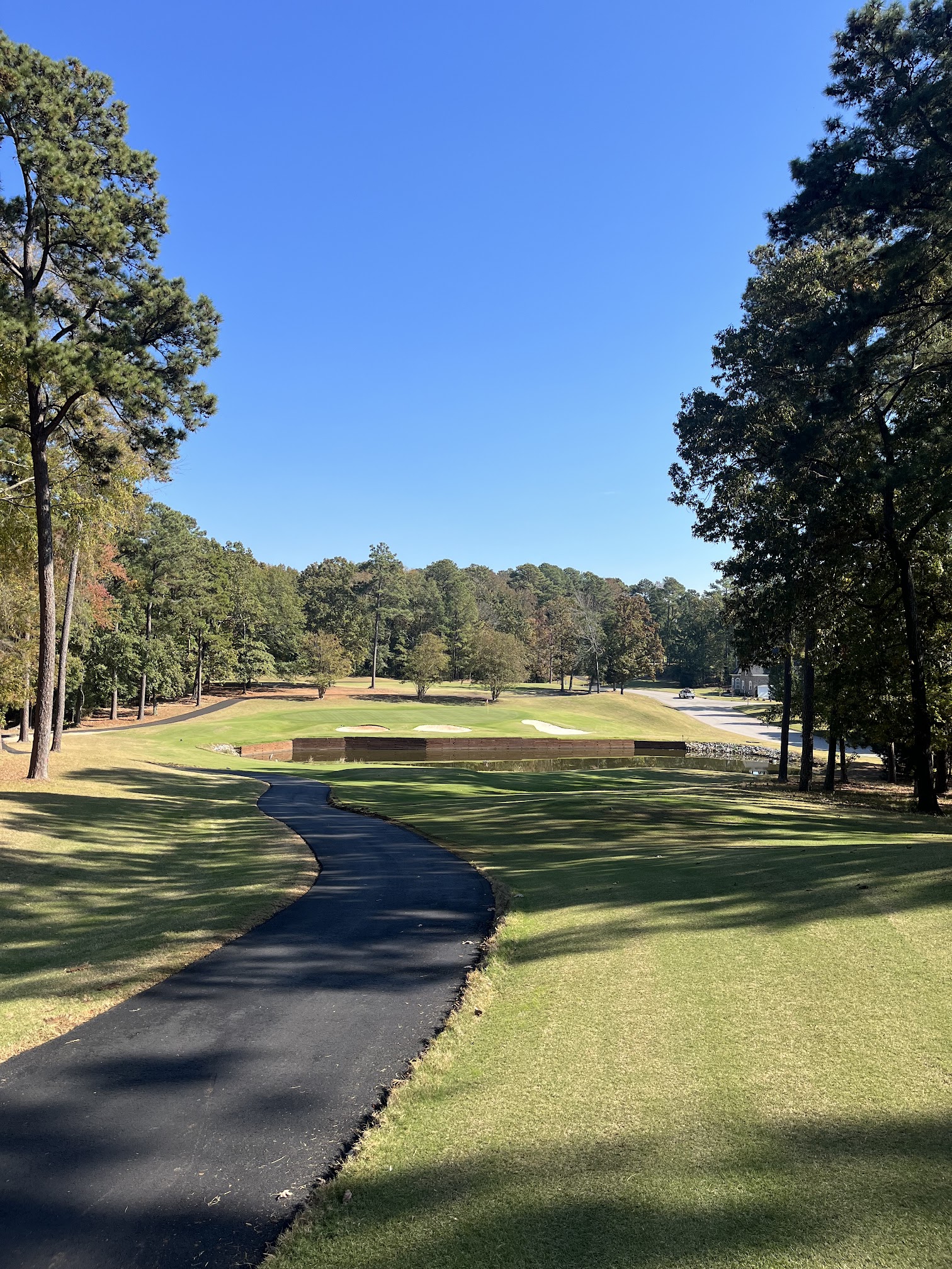This is a very nice course and worth a trip to play, as it is well off the main roads. The location and views along the lake make for a visually appealing round of golf, and the conditions, even in early spring after a day of heavy downpours, were well above average. Carts were top notch and there was plenty of parking. It all added up to a pleasant playing experience. One word of warning, however: we booked our round on the golf course website, which quoted $60pp with cart. When we checked in, the round rang up at over $125pp. When I challenged the rate, and showed that I had booked on their website at $60, I was told it was "master week pricing". I thought that was really not fair. The pro shop attendant offered me a reduced rate, but it was still much more than the rate I booked online. We paid it and played, and otherwise enjoyed the round and the course, but that left me with an uncomfortable feeling that I had been "had". I did reach out to the pro via e-mail to express my disappointment and to recommend they fix that before the next Masters season, but got no response. As nice as this course and the facilities are, it's a shame that they got this part wrong.