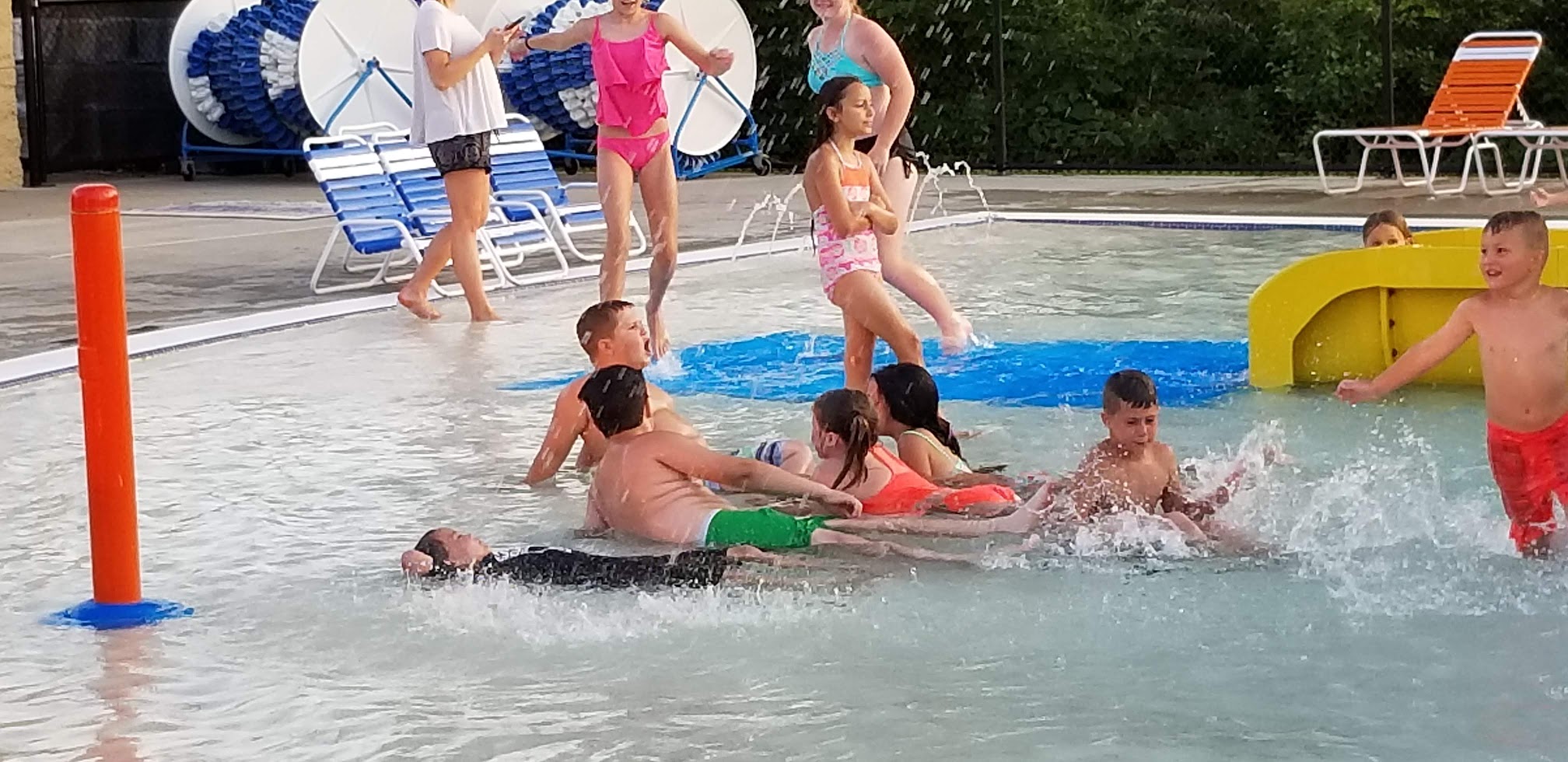 Clean pools with attentive lifeguards. I like that the main pool seems to be all one depth. Even when the pool is busy, you can find a spot to stand and talk and splash. Sometimes can be hard to find a chair/lounger when you come during a busy time. The prices at the concession stand are REALLY reasonable, but often the workers only take one order at a time, which makes the line move very slow if someone orders something that takes them any sort of time to make. I wish they would have one window for taking the order and one window for pick up when the order is complete. It would seriously make that a better system. The locker rooms are just fine, not glamorous but not disgusting. The price to get in is reasonable for the size of park, it is $7 per adult I believe. Parking can be hard to come by on busy times as well, as the parking lot is small.