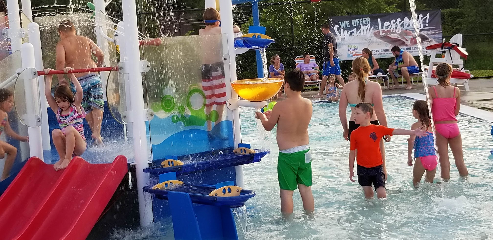 My family and I love coming here!! Great way to keep the kids entertained on a budget during the summer break . We have 4 boys ages 5, 8, 10 and 16. Highly recommend purchasing a family season pass. Its $140 for a family of 4 then $40 for each additional person but still worth it. You can purchase the pass first and then add people later in the season if needed. We live in Heritage and our neighborhood has a pool, but this summer we didnt use it once. We even rode our bikes a few times taking the trails and you can pack a lunch or bring snacks as well. There's 2 separet pools, plenty of shaded areas and life jackets of all sizes. The zero depth pool has a great play area with a jungel gym for non swimmers and toddlers. The main pool has a depth range of 3.5 feet - 5.5 feet with a huge twisty slide and a roped off diving board area with a high and low diving board. The lifeguards are awesome! They are polite and professional on duty and interact great with the kids off. No need to fret if your little one gets stuck on the high dive. On multiple occasions I've watched an off duty life guard climb up to the top of the high dive and rather escorting the stuck child immediately down they assess the situation first. Then will have an encouraging pressure free conversation with him or her and I have been amazed more times I can count. In a matter of a few mins the little guy or gal overcomes their fear and jumps.