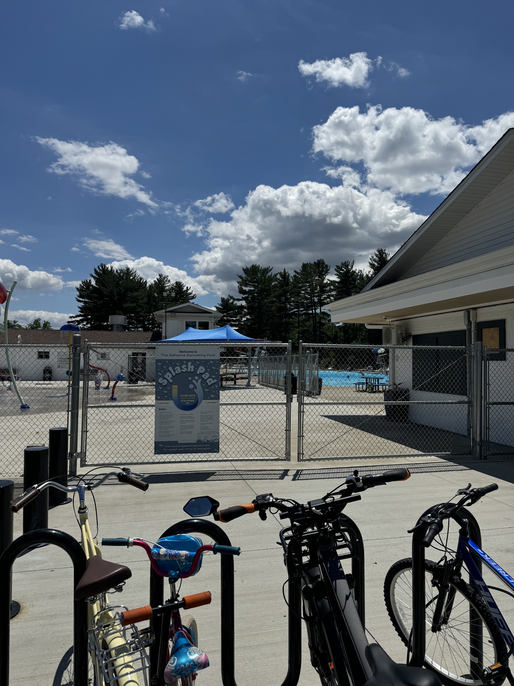 My review is for the splash pad. We are not Gahanna residents but the splash pad is free to the public from 8am-12pm. Perfect for toddlers and it has some water features I have never seen before at other public splash pads. Public bathroom, picnic tables, shaded areas, and general looks pretty safe. I suggest bringing some small toys that float or are water like - my daughter enjoyed having something to toss in the small areas that pool up with water.