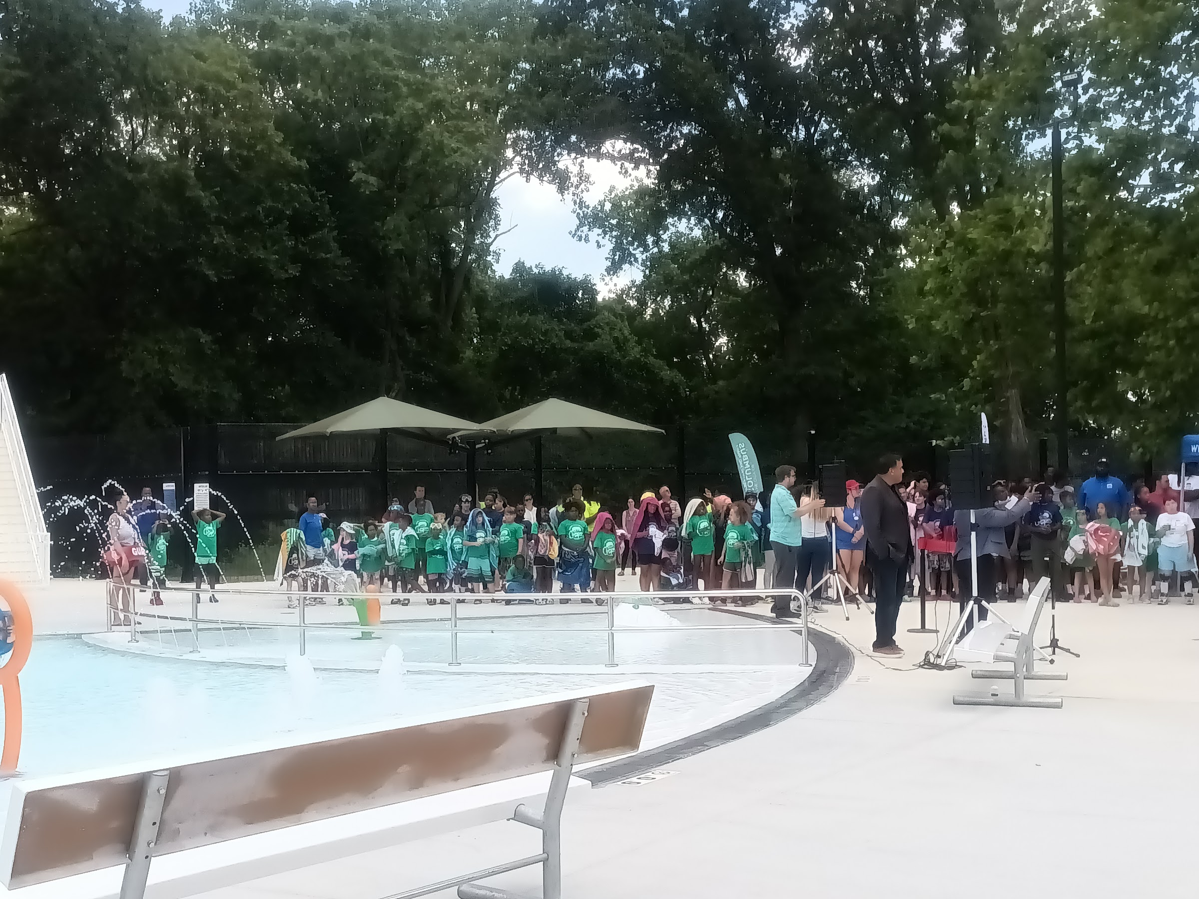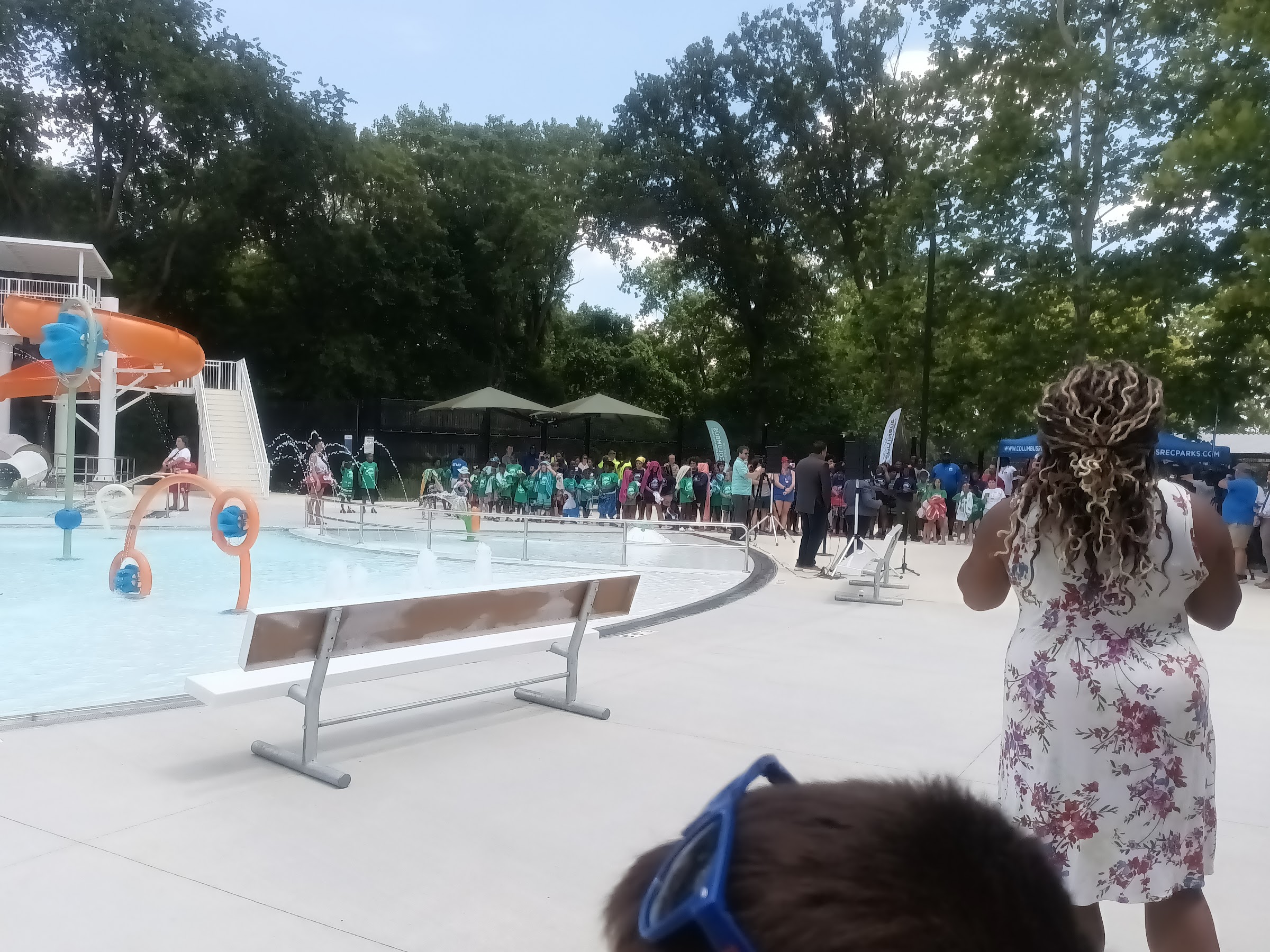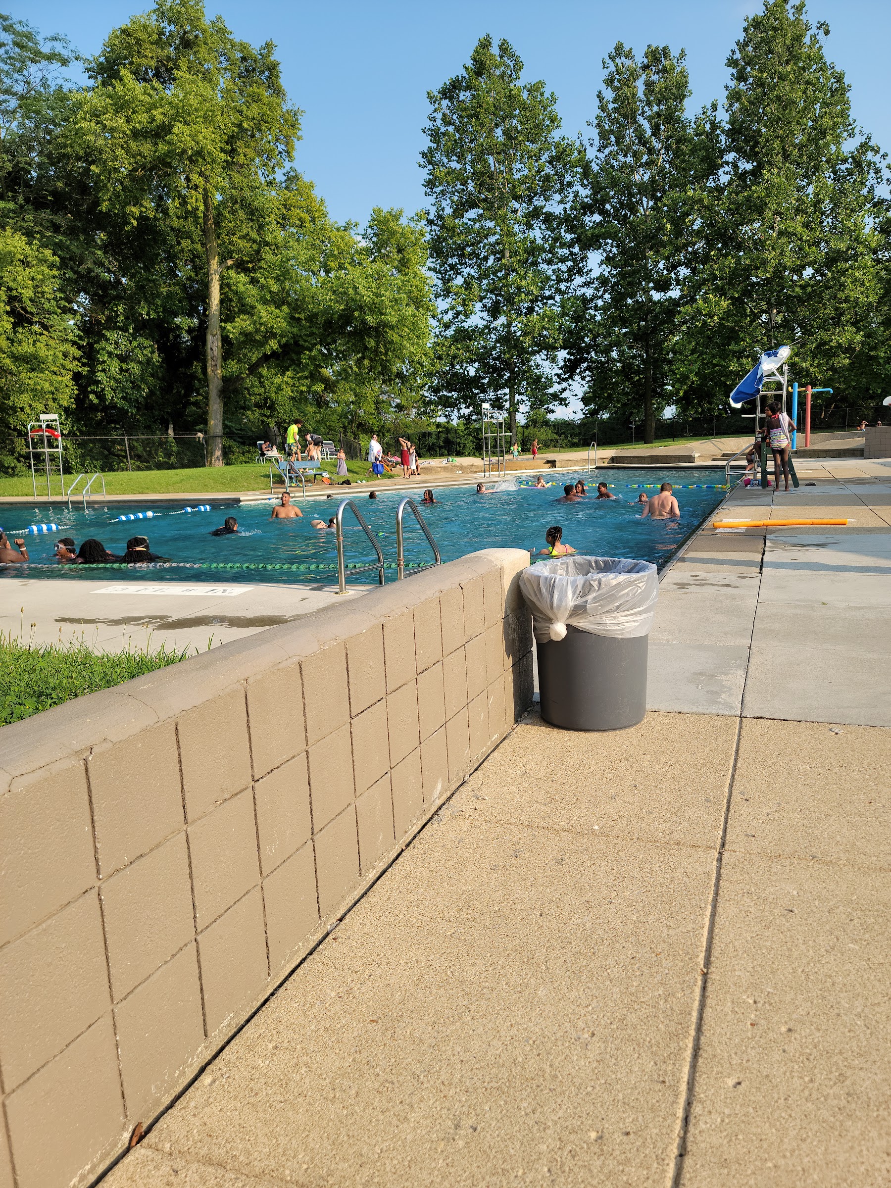 Pros Nice pool, good size, 3 different depth levels separated by obviously visible markings and ropes. Very private environment, you'd never know West Broad street or any of the rest of the west side was anywhere around. Tree lined and private. . Lifeguard always on duty and not distracted. Not very crowded. Music playing. Censored hip-hop & old school pop type music. Cool vibes. Cons They turned the sprinkler system on but it looks to have went out. Mechanical issue??. The pole fountains also are not in operation even though there are small kids who would enjoy it.