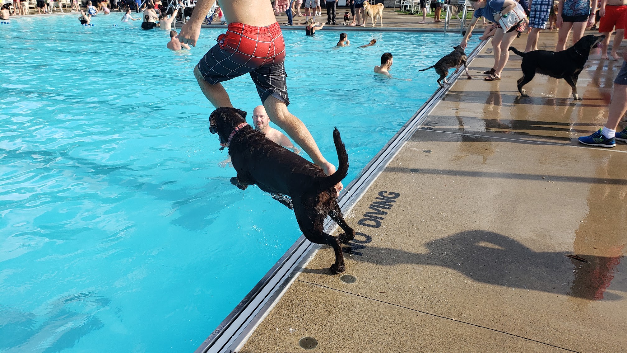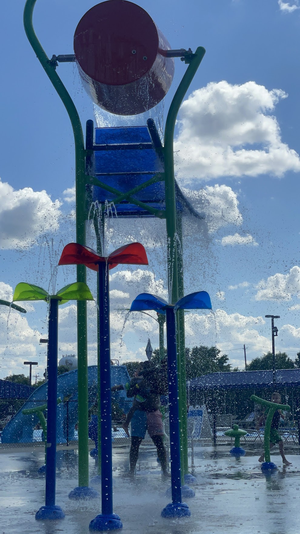 Public pool offering a splash pad, diving boards, and day passes.