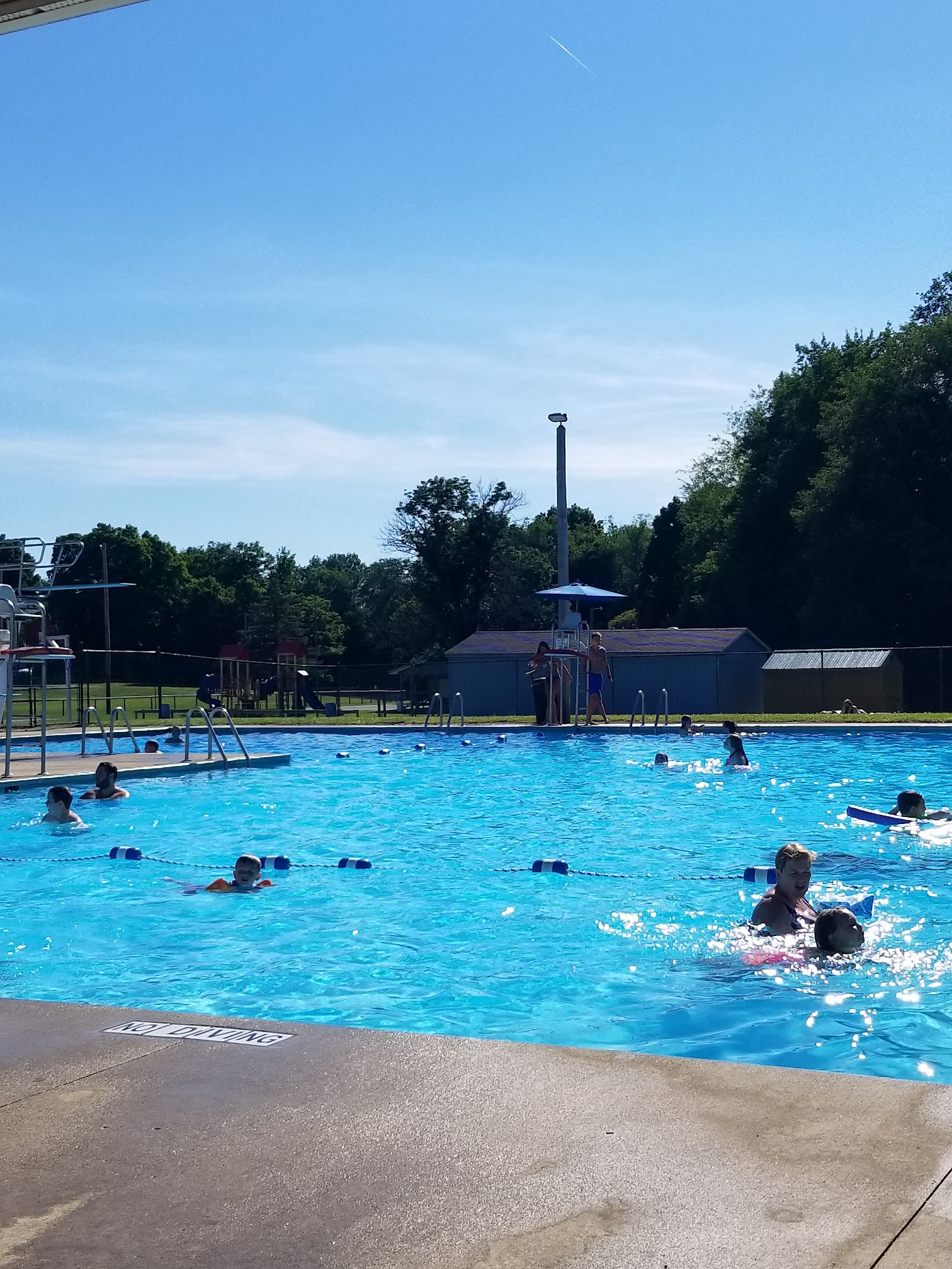 The Somerset-Reading Township Pool, located at 300 Dr Mike Clouse Dr, Somerset, OH 43783, USA, is a popular community outdoor swimming facility. It is known for being a family-friendly destination, featuring two large water slides, a diving board, and a zero-entry section with spray features that is suitable for younger children. The pool operates seasonally, typically during the summer months, and also includes a concession stand for refreshments.