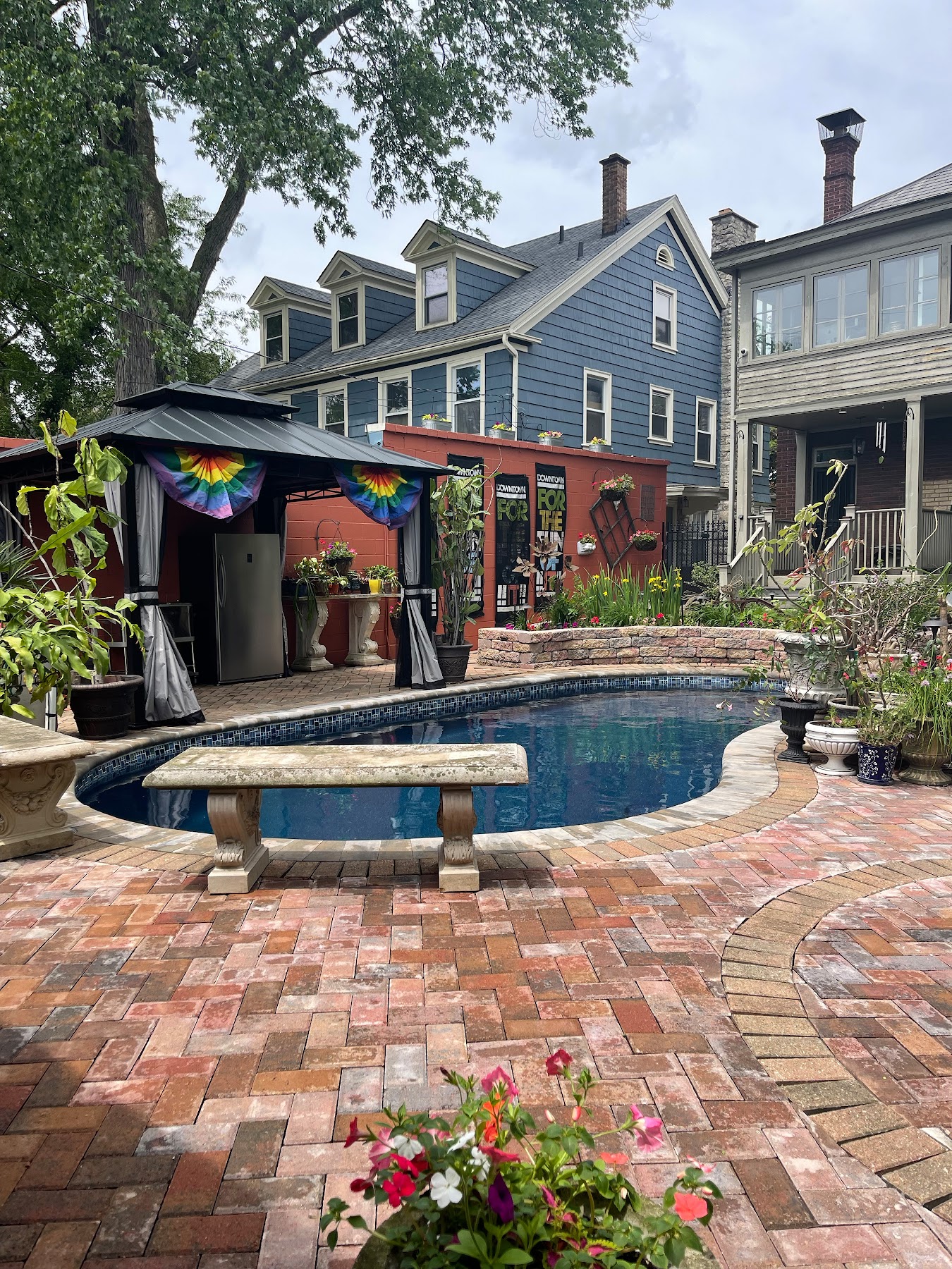 What are people saying (AI review summary)? Guests overwhelmingly praise this venue as an 'oasis' and 'glorious space,' consistently highlighting the wonderful and welcoming hosts, Michael and Allen. Key amenities include an amazing pool with fun features like a bubble machine and available floaties (guests suggest bringing glow sticks), a relaxing hot tub available year-round, a full kitchen, a spacious grilling/bar area, and abundant seating. The landscaping is described as spectacular, and the space is noted for easy cleanup. It's considered perfect for various occasions like birthday parties, events, a girls' pool day, or even a wedding night, offering great value. A $20 deposit is mentioned, and potential guests should be aware of a cat on the premises, particularly if allergic. Rooms are also available for rent, and many guests express a strong desire to revisit.