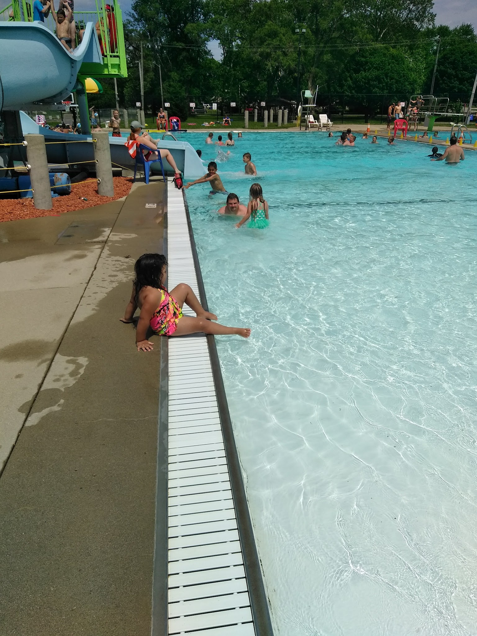 We love the pool. It's always nice and clean. It could use more shaded areas. Kids love the slide and the diving board. My son took swimming lessons there. The life guards were very kind and attentive. Good prices for entry too.