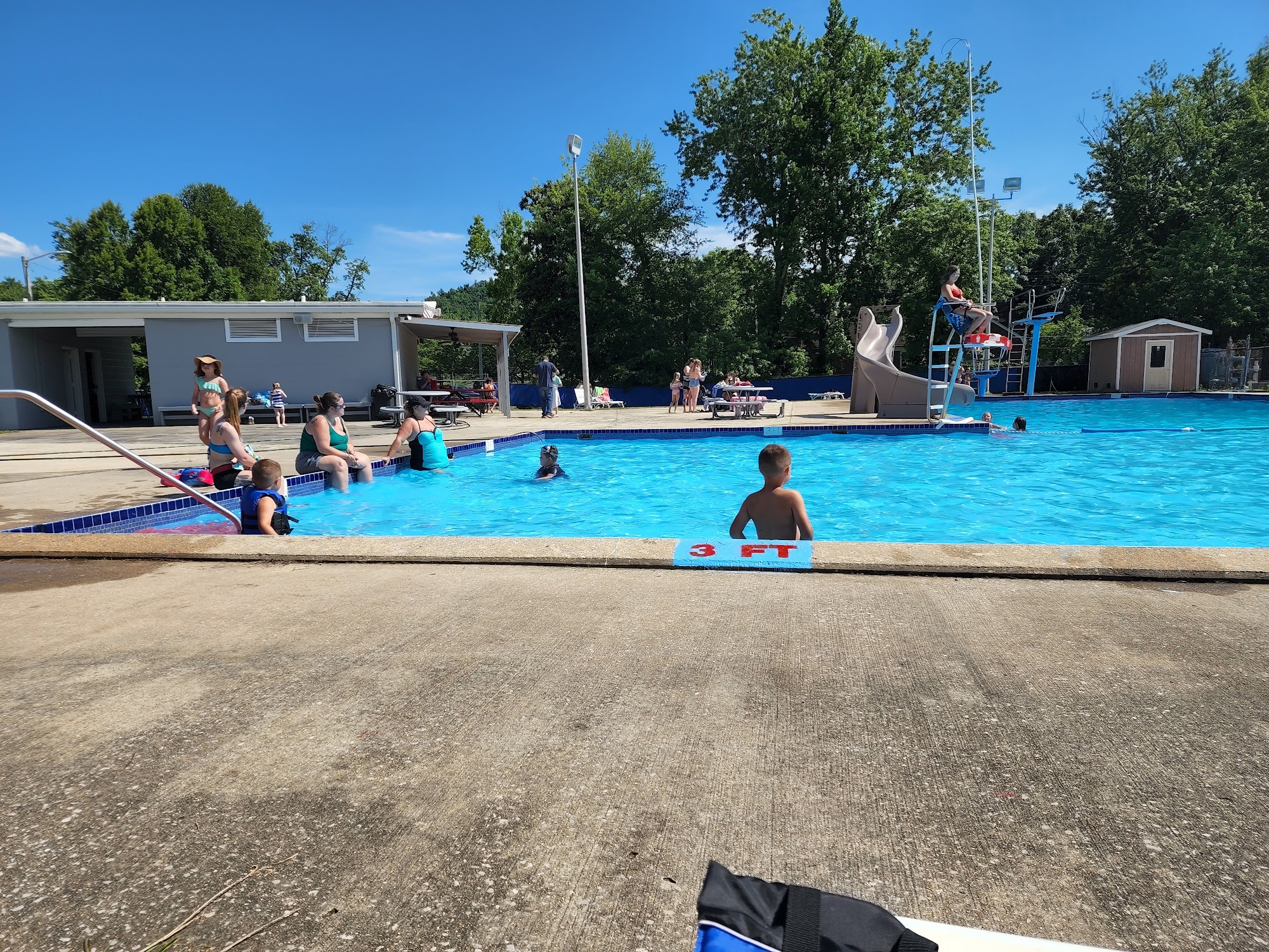 What are people saying (AI review summary)? The pool receives mixed reviews, often praised for its spaciousness, good amenities like diving boards and a slide, ample seating, and a unique 'standing strip' feature that allows young children to experience the deep end. Snacks are also available at reasonable prices. However, significant drawbacks include limited operating hours, concerns about pool cleanliness (dirty water with floating debris, and an intake vent covered in debris), and aging/cracked concrete around the pool. Lifeguard attentiveness is inconsistently reported, with some noting they are attentive while others observe them as less engaged, leading to excessive horseplay that detracts from the experience for some visitors.