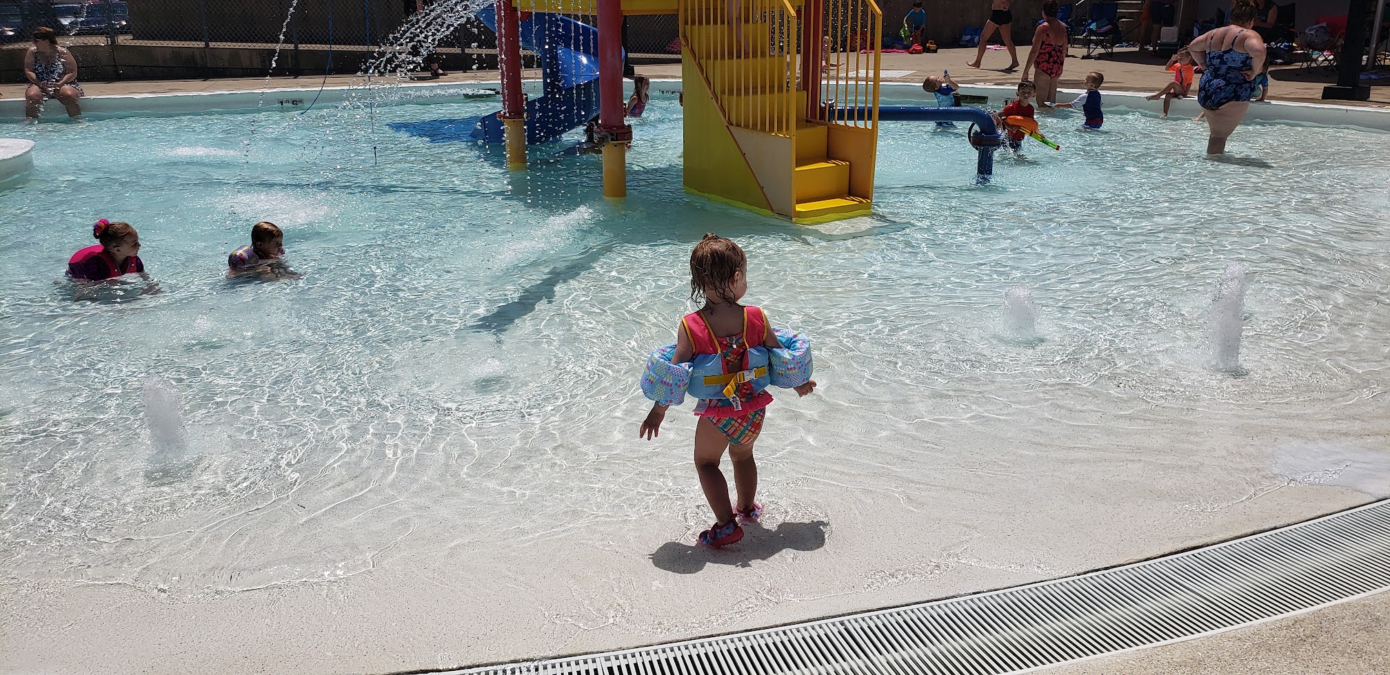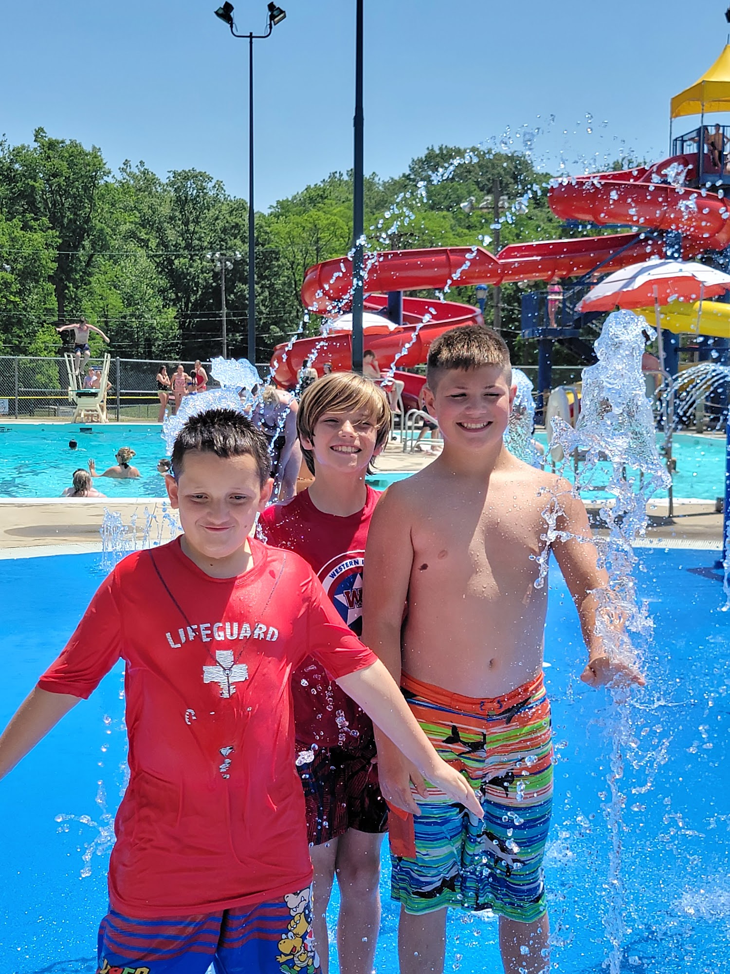 Summer center featuring zero-depth entry for kids and a splash pad, along with a lazy river.